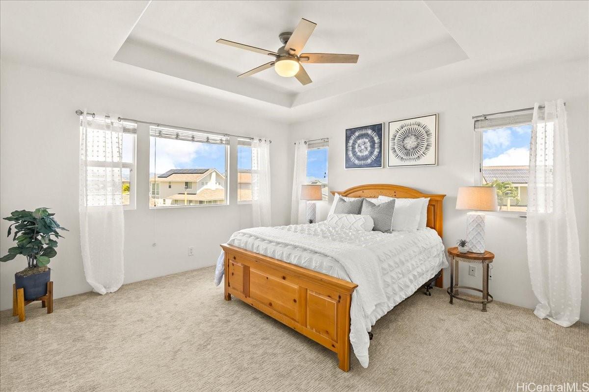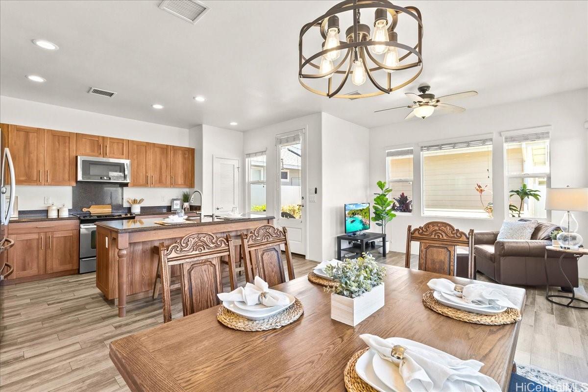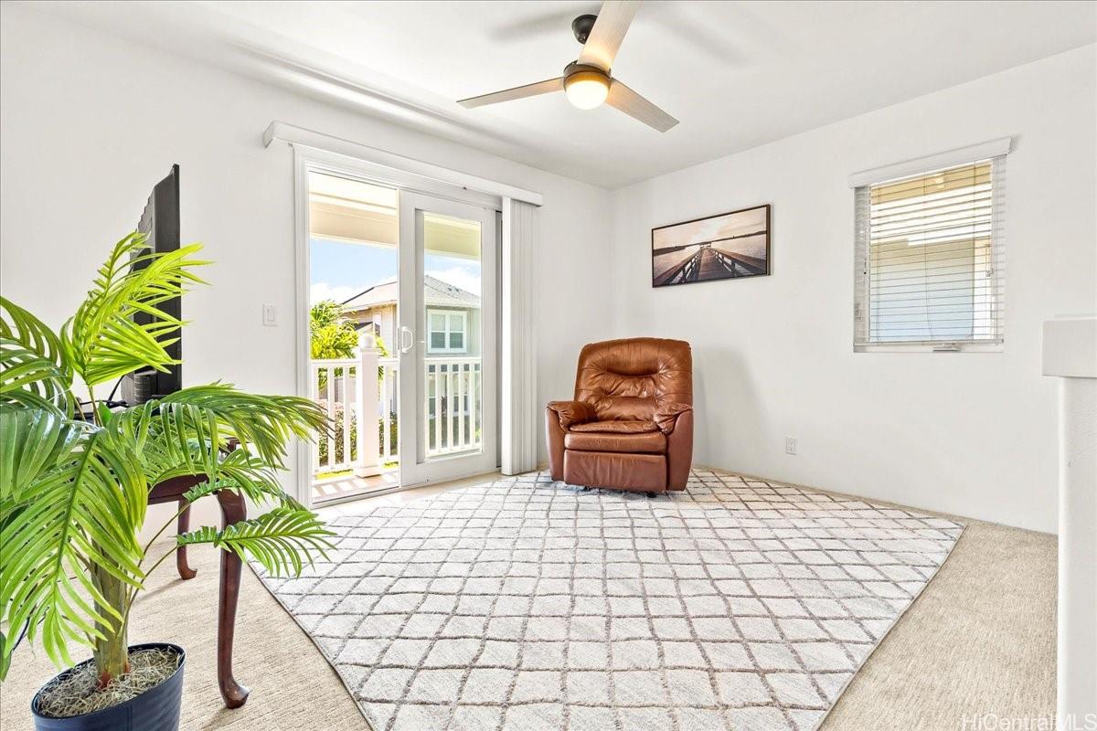 Step into this stunning residence located in the sought-after, resort-style, gated community of Kipuka at Hoakalei, surrounded by the beautiful Hoakalei Golf Course. This spacious home features open floor plan w/ abundance of natural light. The kitchen is equipped w/ SS appliances, including recently purchased refrigerator as well as washer & dryer. BRAND NEW STOVE, DISHWASHER & MICROWAVE installed just this month. Downstairs boasts ceramic tile floors, while upstairs is fitted w/ upgraded carpet. The home has been freshly painted, adding to its modern appeal. Additionally, the AC unit was replaced in 2020/2021, ensuring comfort year-round. The ground floor also offers a full BR & BA. Primary BR is generously sized w/ mountain views, while the upstairs loft provides additional living space, perfect for relaxation or entertainment. Tech area w/ built-in desk overlooks the courtyard & offers views of the swim club & rec area. As a resident, you’ll have access to a variety of community amenities, including pool with gas grills & cabanas, playground, & the Wai Kai Hale Private Club, featuring a large lagoon for paddleboarding & kayaking. This is more than just a home; it’s a lifestyle. Listing by: Island Sun Real Estate Pros (808) 683-2183