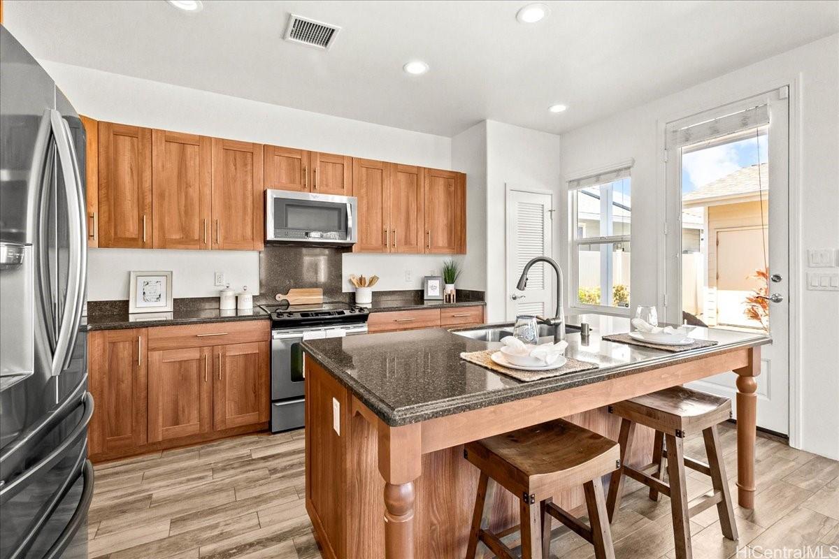 string(1204) "Step into this stunning residence located in the sought-after, resort-style, gated community of Kipuka at Hoakalei, surrounded by the beautiful Hoakalei Golf Course. This spacious home features open floor plan w/ abundance of natural light. The kitchen is equipped w/ SS appliances, including recently purchased refrigerator as well as washer & dryer. BRAND NEW STOVE, DISHWASHER & MICROWAVE installed just this month. Downstairs boasts ceramic tile floors, while upstairs is fitted w/ upgraded carpet. The home has been freshly painted, adding to its modern appeal. Additionally, the AC unit was replaced in 2020/2021, ensuring comfort year-round. The ground floor also offers a full BR & BA. Primary BR is generously sized w/ mountain views, while the upstairs loft provides additional living space, perfect for relaxation or entertainment. Tech area w/ built-in desk overlooks the courtyard & offers views of the swim club & rec area. As a resident, you’ll have access to a variety of community amenities, including pool with gas grills & cabanas, playground, & the Wai Kai Hale Private Club, featuring a large lagoon for paddleboarding & kayaking. This is more than just a home; it’s a lifestyle."
