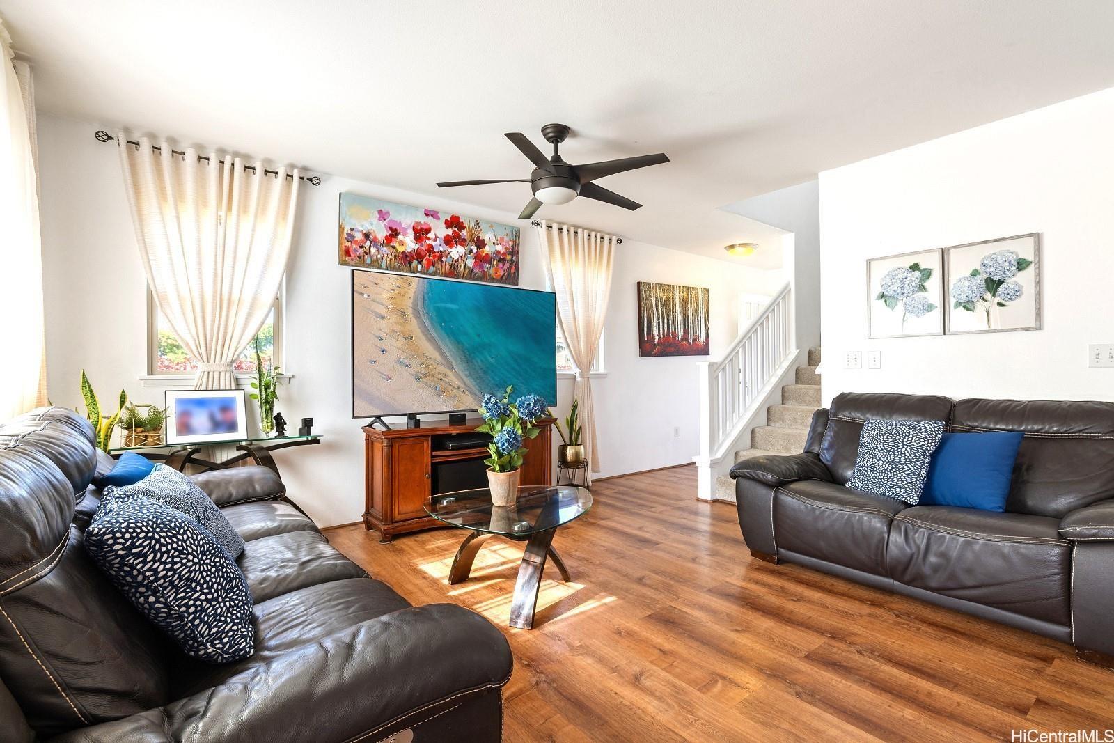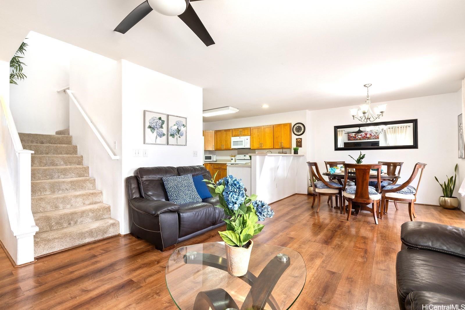 string(1035) "MUST SEE! $10,000 CLOSING COST CREDIT TO THE LUCKY BUYER! This rarely available corner-unit townhome in the desirable Nohona II at Kapolei stands out from the rest with its 2-car enclosed garage PLUS 2 additional driveway parking spaces—a rare find compared to most listings offering only a 1-car garage. The home features 3 bedrooms, 2.5 baths, and a fenced yard. Inside, enjoy recent upgrades including Luxury Plank flooring, wall-to-wall carpet, and AC units in every room for year-round comfort. The spacious primary suite includes a walk-in closet and dual vanity sinks. Step outside to a low-maintenance, private yard, perfect for outdoor living, entertaining, or simply relaxing in your own peaceful retreat. Located minutes from Costco, Ka Makana Ali‘i shopping center, Target, theaters, 24-Hour Fitness, schools, playgrounds, community pool, golf courses, and stunning West O‘ahu beaches, this home offers both convenience and lifestyle. Make sure to stop by during Open House on Sunday, September 28, 2025 from 2pm-5pm."