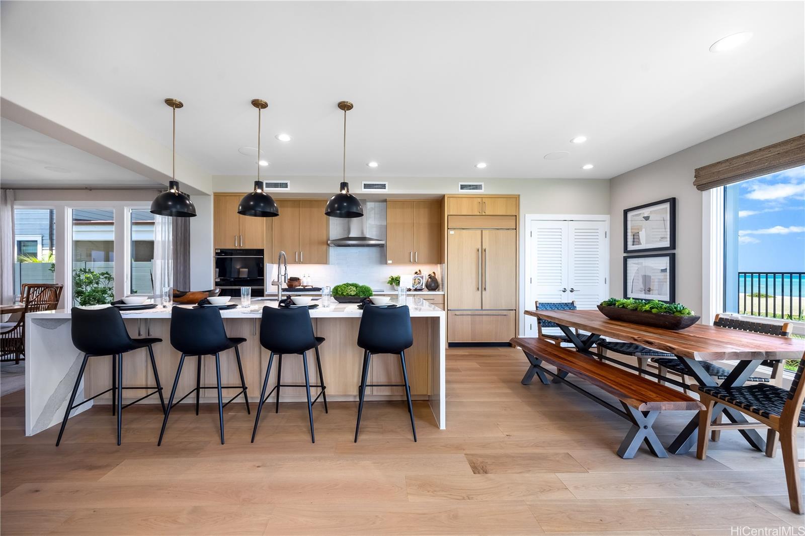 string(1083) "Experience refined coastal living in this expansive new construction single-family home offering over 4,100 square feet of thoughtfully designed interior space. With five spacious bedrooms, five-and-a-half baths, a generous loft, private retreat, covered lanai, and a three-car garage, this residence is ideal for both relaxed everyday living and elevated entertaining. Enjoy panoramic ocean views and a host of upscale features, including central air conditioning, a 120-gallon solar water heater, EV charger readiness, and accommodations for a photovoltaic solar electric system. The gourmet kitchen is outfitted with premium Sub-Zero and Wolf appliances—including a 42” built-in refrigerator, stainless steel induction cooktop, convection oven, microwave with drop-down door—and a Bosch Energy Star-certified dishwasher. Professional front and rear landscaping with automatic irrigation complete the home’s seamless indoor-outdoor lifestyle. Naupaka - 75.30 A floorplan. Kekainani at Hoakalei | One of the final 32 luxury residences in the prestigious Kuapapa neighborhood"
