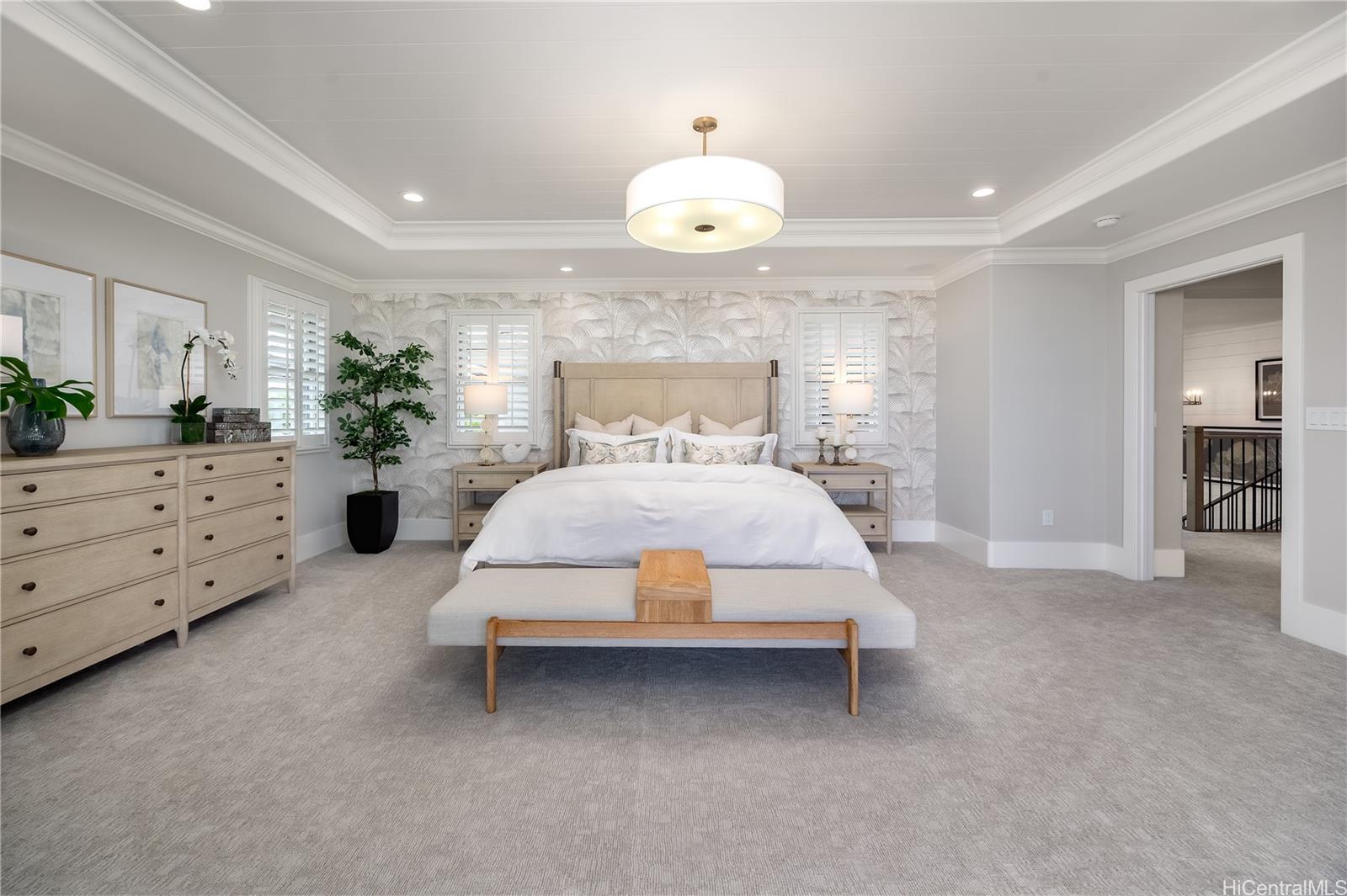 Step into refined coastal luxury with this expansive new construction residence, offering over 4,000 square feet of beautifully designed living space. With five bedrooms, four-and-a-half baths, a dedicated study, a covered lanai, and a private courtyard, this home seamlessly blends functionality with sophistication—perfect for both peaceful retreat and vibrant entertaining. Enjoy sweeping ocean views and a full suite of elevated features, including central air conditioning, a 120-gallon solar water heater, EV charger readiness, and accommodations for a photovoltaic solar electric system. The gourmet kitchen is thoughtfully appointed with top-tier appliances: a 42” built-in Sub-Zero refrigerator, Wolf induction cooktop, convection oven, microwave with drop-down door, and an Energy Star-certified Bosch dishwasher—all designed for culinary excellence. Outdoors, professionally landscaped front and rear yards with automatic irrigation offer a lush, low-maintenance setting for gathering, relaxing, or simply enjoying the breeze. Pohinahina 75.20 A floorplan Kekainani at Hoakalei | One of the final 32 luxury residences in the prestigious Kuapapa neighborhood Listing by: Haseko Realty (Hawaii), Inc. (808) 391-5387