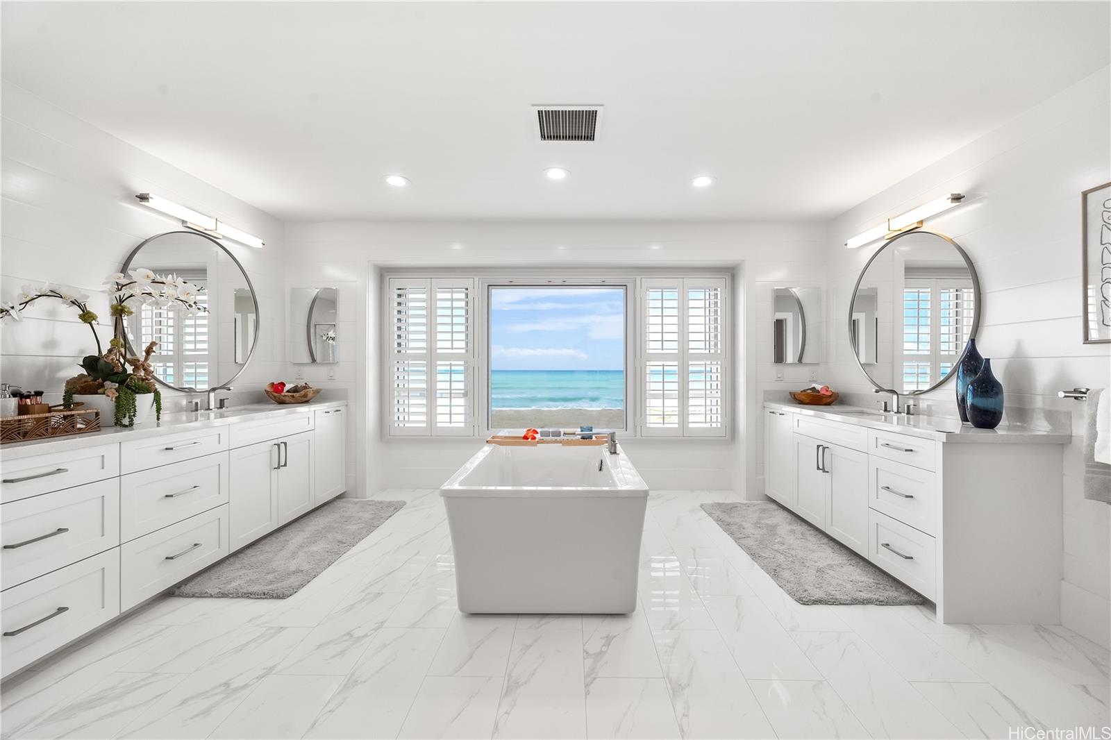 [0] => Step into refined coastal luxury with this expansive new construction residence, offering over 4,000 square feet of beautifully designed living space. With five bedrooms, four-and-a-half baths, a dedicated study, a covered lanai, and a private courtyard, this home seamlessly blends functionality with sophistication—perfect for both peaceful retreat and vibrant entertaining. Enjoy sweeping ocean views and a full suite of elevated features, including central air conditioning, a 120-gallon solar water heater, EV charger readiness, and accommodations for a photovoltaic solar electric system. The gourmet kitchen is thoughtfully appointed with top-tier appliances: a 42” built-in Sub-Zero refrigerator, Wolf induction cooktop, convection oven, microwave with drop-down door, and an Energy Star-certified Bosch dishwasher—all designed for culinary excellence. Outdoors, professionally landscaped front and rear yards with automatic irrigation offer a lush, low-maintenance setting for gathering, relaxing, or simply enjoying the breeze. Pohinahina 75.20 A floorplan Kekainani at Hoakalei | One of the final 32 luxury residences in the prestigious Kuapapa neighborhood