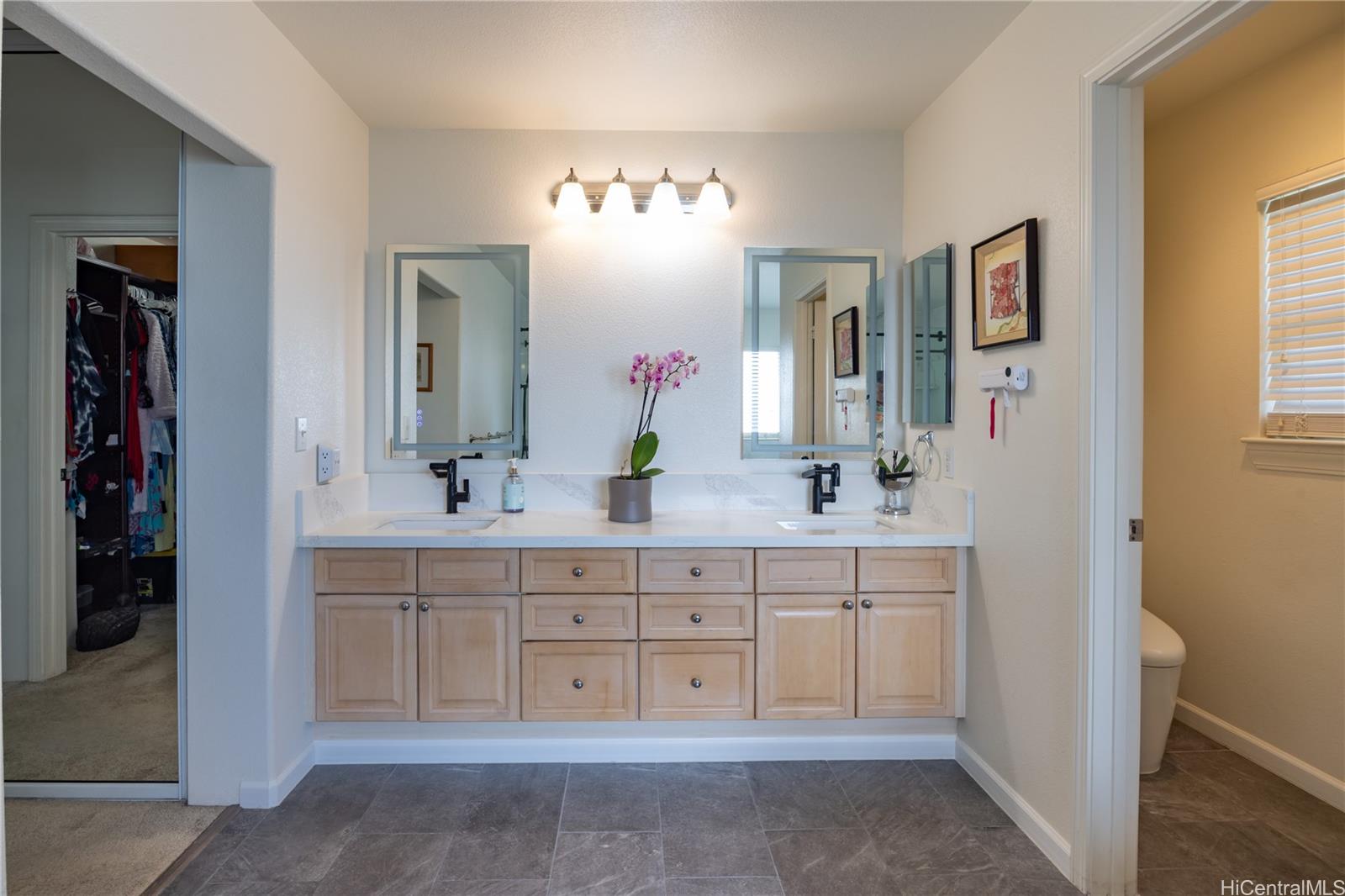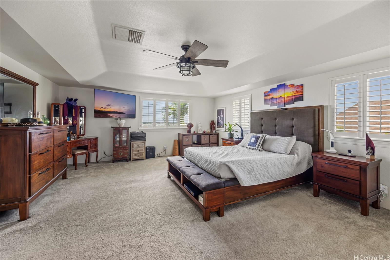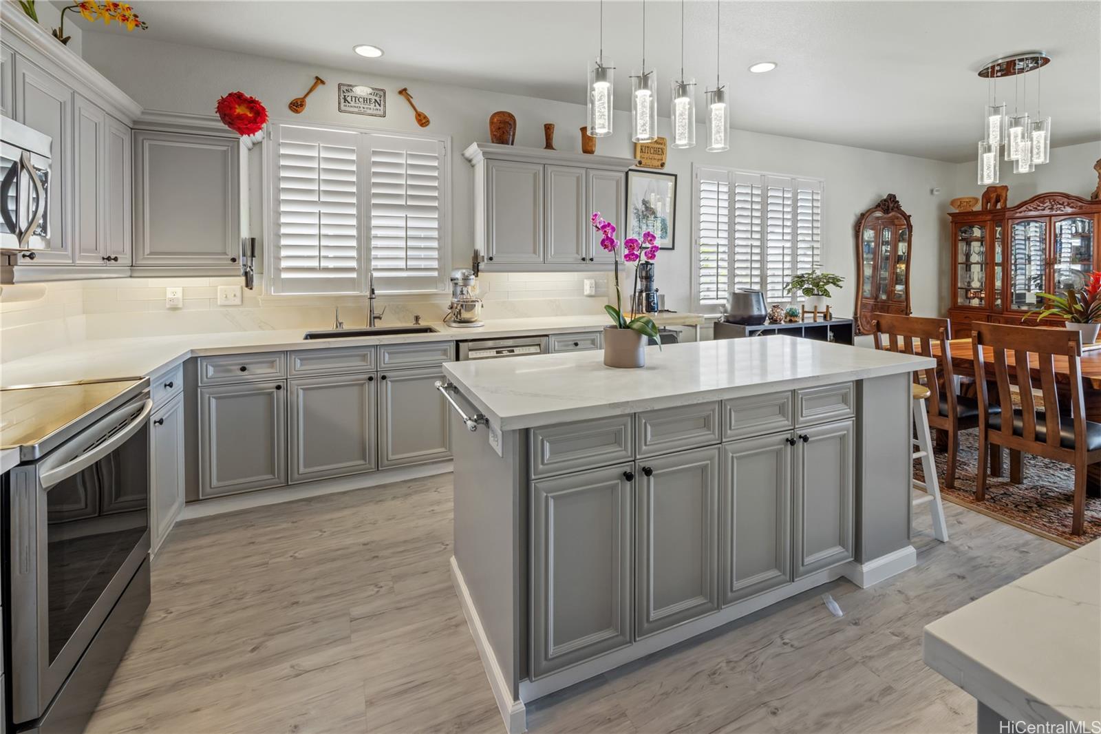Welcome to this move-in ready home in the highly desirable Kapolei Knolls community! Recently refreshed inside and out with new paint, this beautifully updated residence blends comfort, style and modern convenience. Enjoy effortless living with an fully integrated smart home system featuring a state-of-the art security setup, intelligent climate control and premium WI-FI-enabled appliances. The home includes 34 owned solar panels that includes a battery backup in addition to the 11 existing leased solar panels-offering impressive energy efficiency. Plantation shutters and new flooring, built-in central vacuum system,Toto toilets in all bathrooms with a built-in-bidet adds a touch of elegance throughout. Designed for entertaining and relaxation, the property features an extended backyard lanai that opens to a sparkling in-ground swimming pool- a rare find in the neighborhood. Take in panoramic views of Diamond Head and the city coastline as you unwind or host gatherings. Conveniently located to schools, shopping and recreation. Take the plunge, relax and start living your island dream! Listing by: Coldwell Banker Realty (808) 255-3477