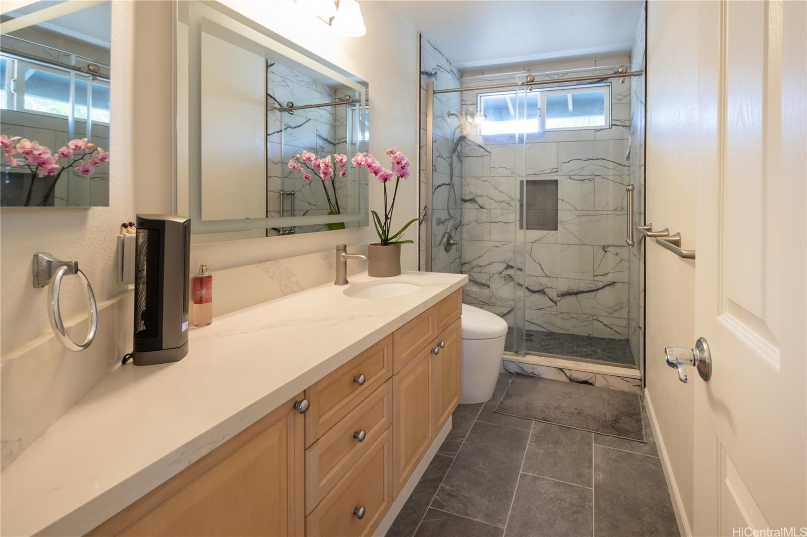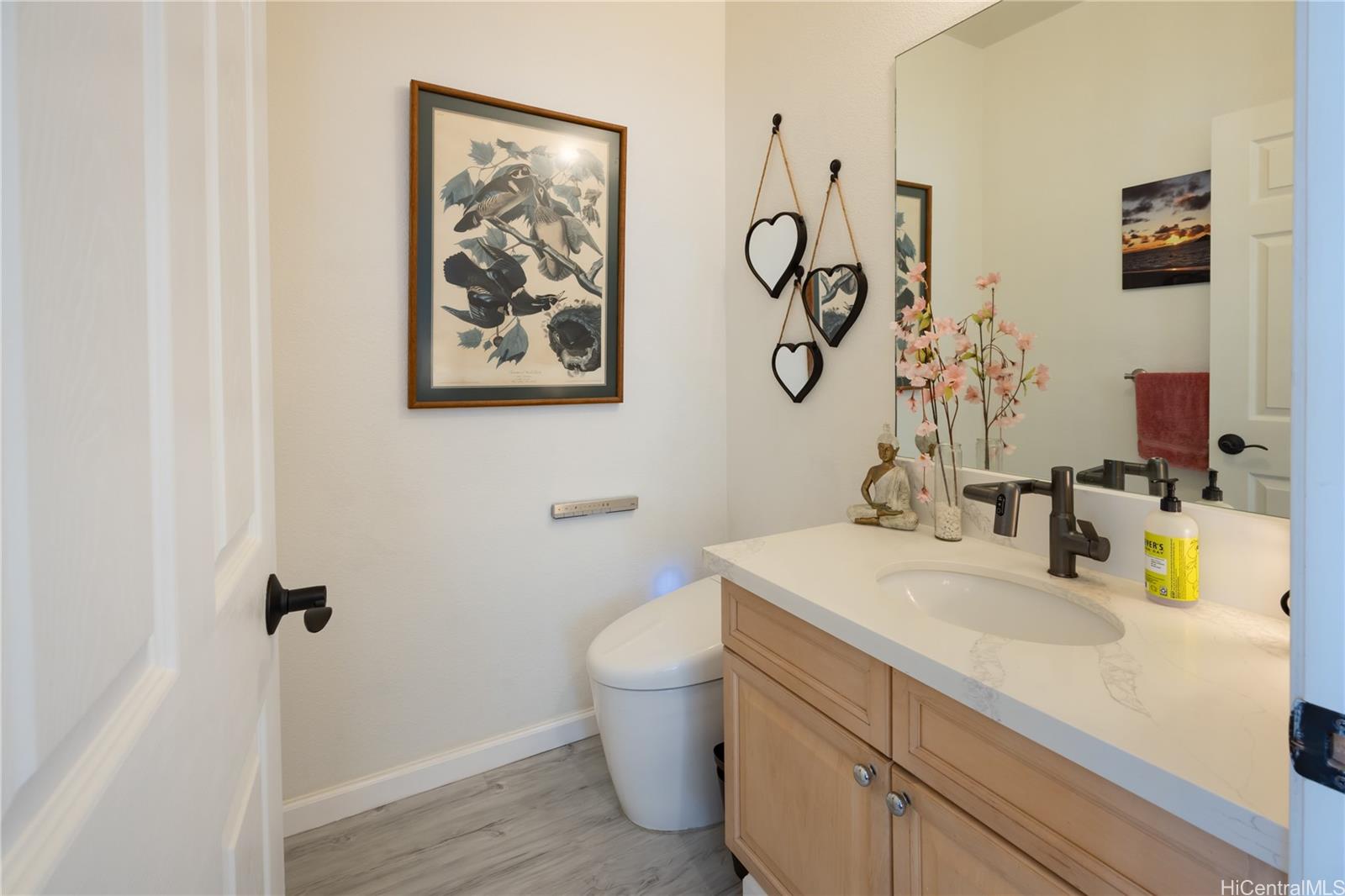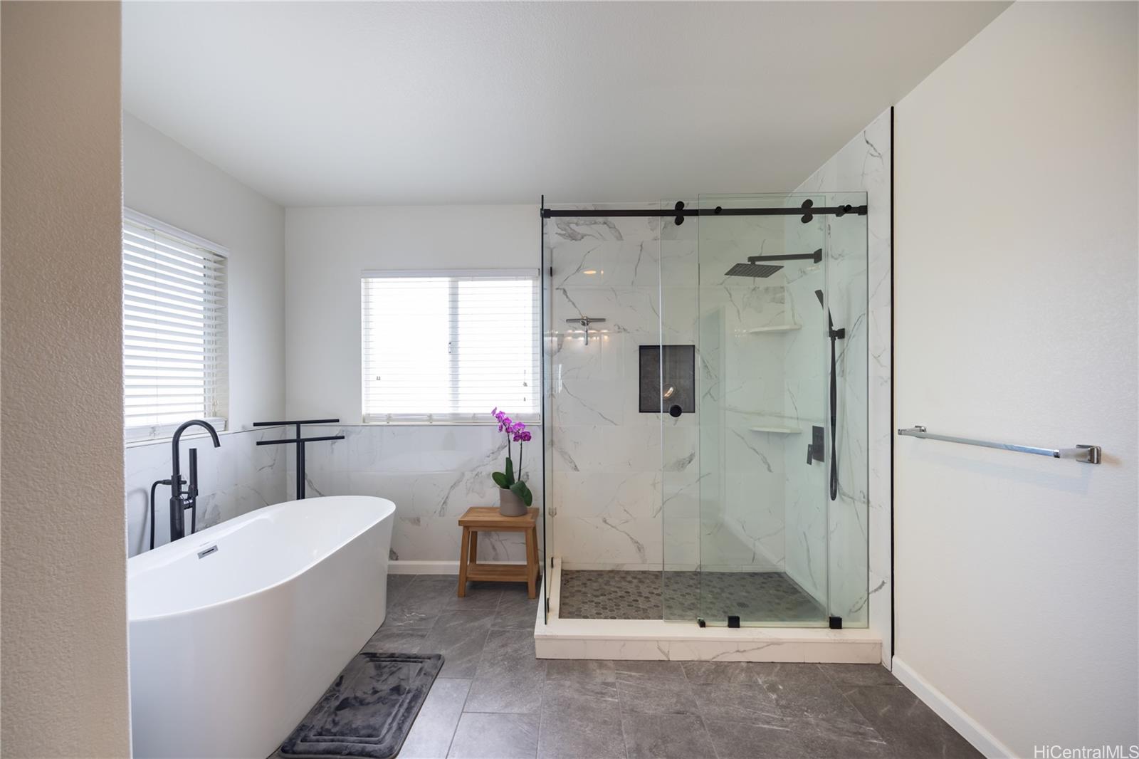 Welcome to this move-in ready home in the highly desirable Kapolei Knolls community! Recently refreshed inside and out with new paint, this beautifully updated residence blends comfort, style and modern convenience. Enjoy effortless living with an fully integrated smart home system featuring a state-of-the art security setup, intelligent climate control and premium WI-FI-enabled appliances. The home includes 34 owned solar panels that includes a battery backup in addition to the 11 existing leased solar panels-offering impressive energy efficiency. Plantation shutters and new flooring, built-in central vacuum system,Toto toilets in all bathrooms with a built-in-bidet adds a touch of elegance throughout. Designed for entertaining and relaxation, the property features an extended backyard lanai that opens to a sparkling in-ground swimming pool- a rare find in the neighborhood. Take in panoramic views of Diamond Head and the city coastline as you unwind or host gatherings. Conveniently located to schools, shopping and recreation. Take the plunge, relax and start living your island dream! Listing by: Coldwell Banker Realty (808) 255-3477