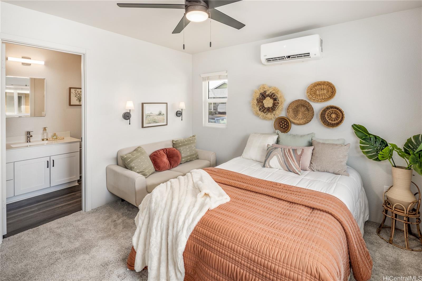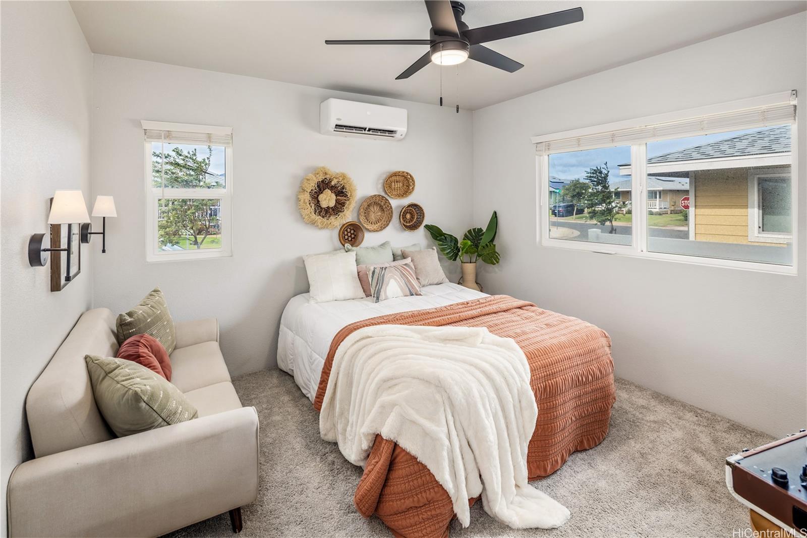 Look at this adorable corner detached single level single family home in Hoopili! The property gives a retro vibes that immediately draws your interest yet in reality, it is a new home that was built in 2022 with split AC in every room. Only about a mile away from the rail station that could make your commute to work or school easier, while also located near many great restaurants and stores. Quiet neighborhood also offers great amenities that you can enjoy such as parks, swimming pool, pickle ball court and soccer field. Relatively easy to show, this gem is awaiting for you! Listing by: Hawaii Modern Realty (808) 792-3910