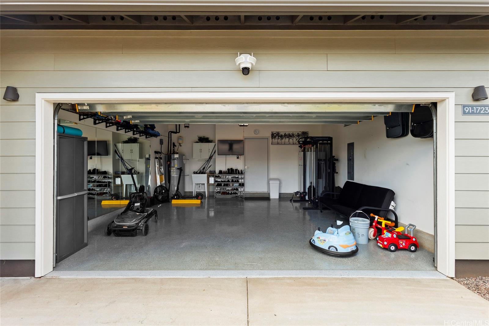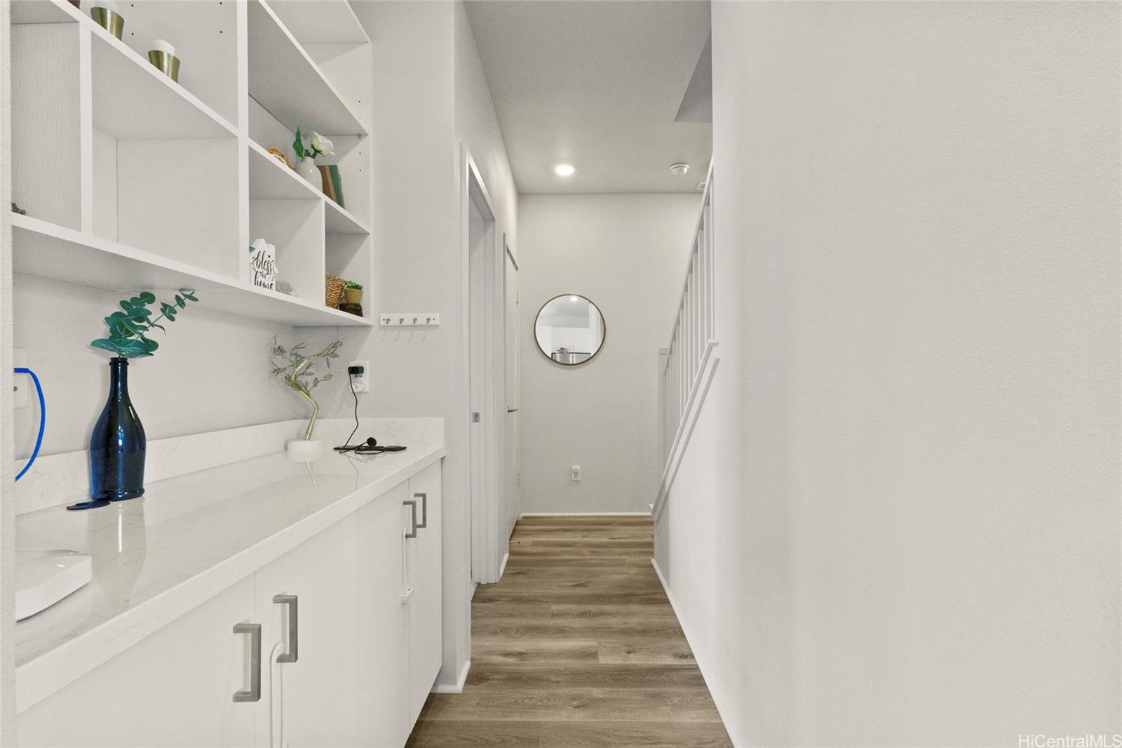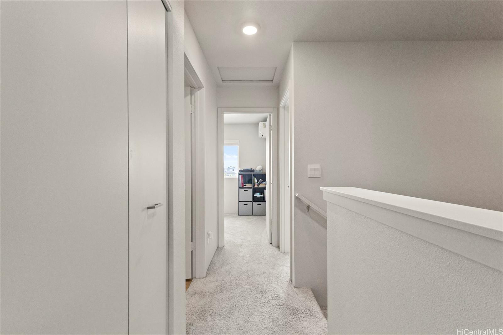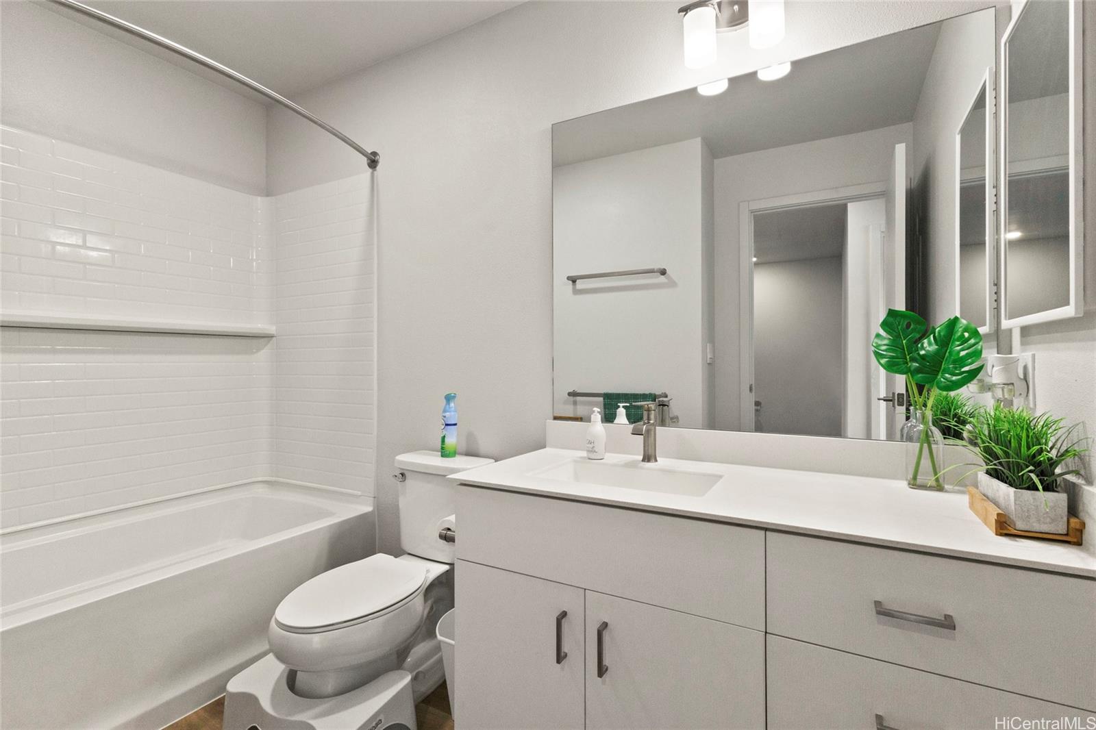 This stunning 4-bedroom, 2.5-bath single-family home offers modern comfort with timeless charm. The first-floor primary suite adds convenience, while soaring vaulted ceilings create an airy open-concept living space. A chef-inspired kitchen with quartz countertops, a large island, luxury vinyl plank flooring, and upgraded KitchenAid appliances make this home shine. Every bedroom includes split AC for year-round comfort, and thoughtful details like Solatube lighting, upstairs linen storage, and a dedicated laundry room elevate daily living. Step outside to your covered lanai, landscaped yard with irrigation, and Urban Garden. Complete with a 2-car garage, Smart Home system, solar water heater, and owned PV Panels. Listing by: eXp Realty (808) 589-9747