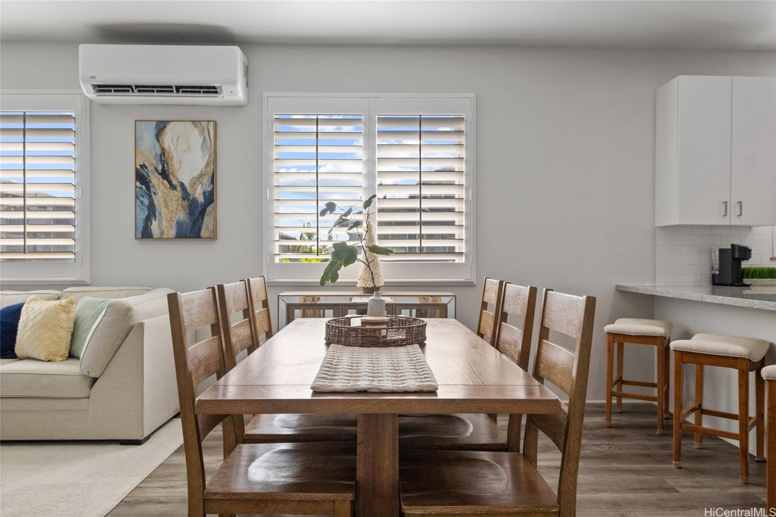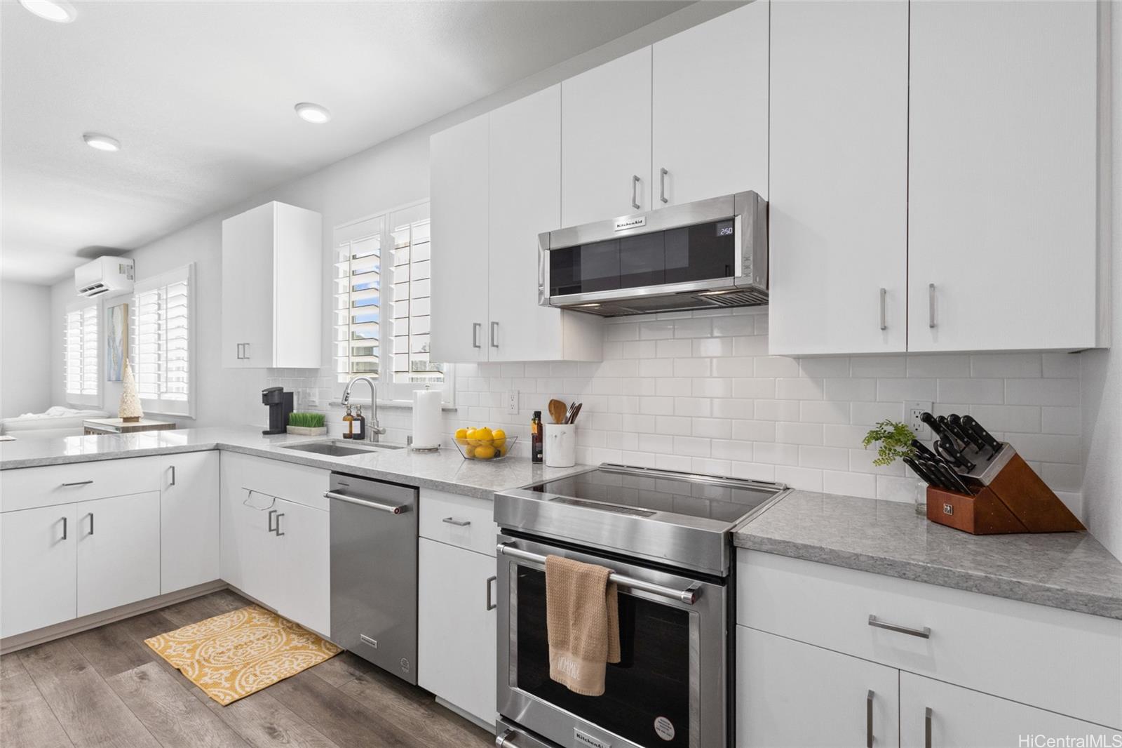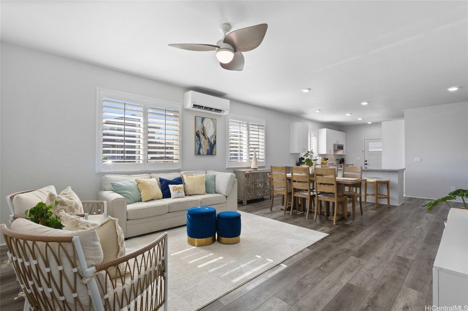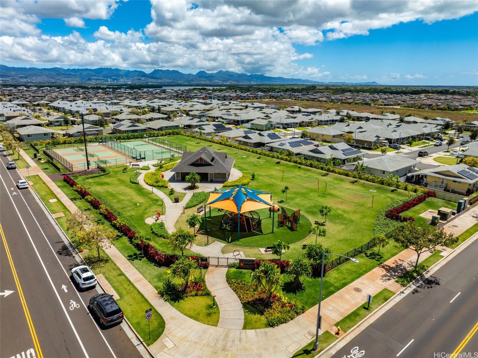 The epitome of luxury is found at this highly upgraded single family home residence that showcases true pride of ownership. Meticulously maintained and situated on a coveted spacious corner lot, the impeccably landscaped grounds and concrete slab additions create stunning curb appeal. Step inside to an open floor plan that features vinyl plank flooring in the main living area, plantation shutters throughout, split A/C units in every room, owned photovoltaic panels, and a modern kitchen with quartz counter tops, stainless steel appliances, and subway tile backsplash. You'll love entertaining on your outdoor patio deck complete with a gazebo, perfect for the ultimate cookout or family gathering. You can also enjoy your morning coffee or relaxing in the evening on your welcoming front porch and don't forget about your extended driveway that can accommodate multiple vehicles and two car garage. Plus, enjoy all of that Hoopili has to offer including multiple parks and playgrounds, community pool, recreational courts, and more. What more can you want? This home truly has it all! Listing by: Refined Real Estate Hawaii LLC (808) 220-8527