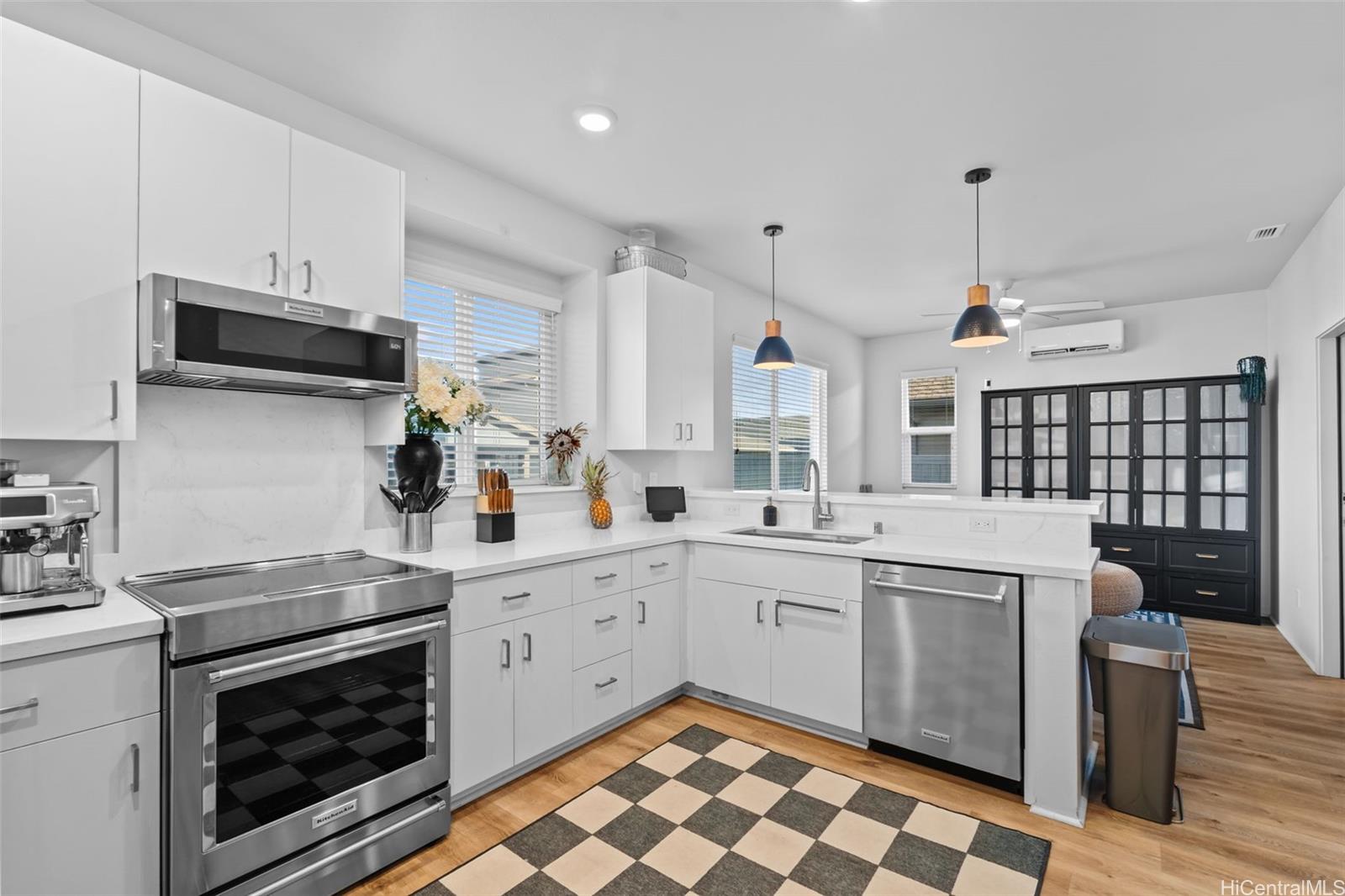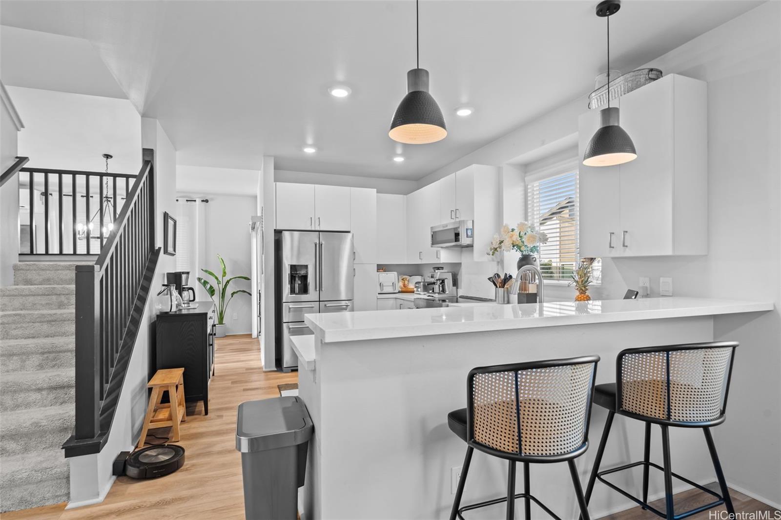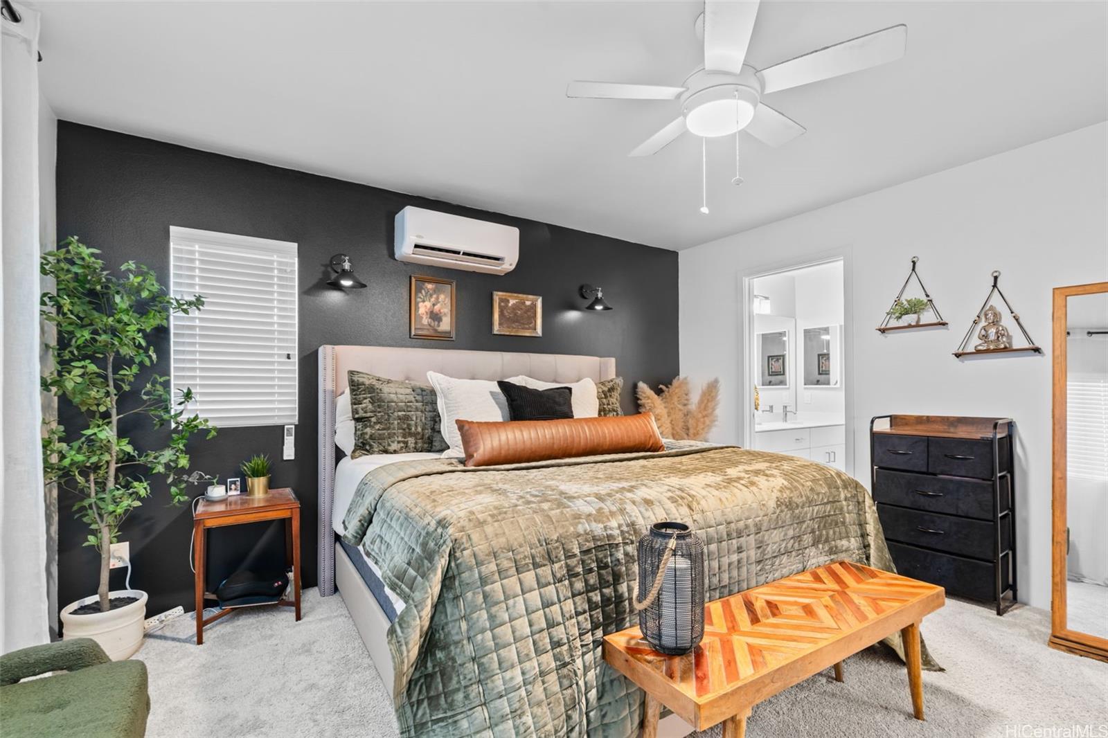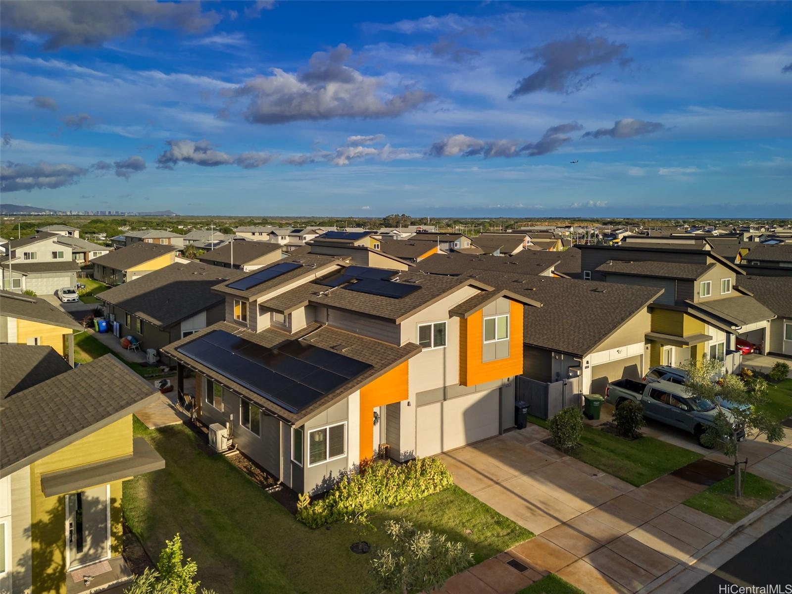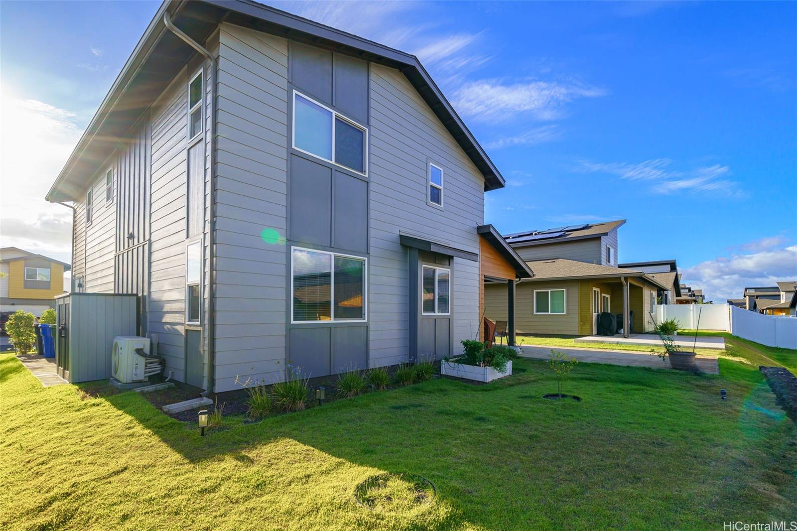 VA Assumable at 5.5%. This stylish and energy-smart home blends modern comfort with thoughtful upgrades. Inside, the open layout connects a light-filled living and dining area to a sleek kitchen with white cabinetry, solid-surface counters, and stainless steel appliances perfect for cooking, entertaining, and everyday living. Upstairs, four spacious bedrooms include a private primary suite with a generous walk-in closet and spa-inspired bath. Split A/C in every room keeps the home cool year-round, while smart home features put control at your fingertips. The owners have taken this home to the next level with 32 owned solar panels, 3 Tesla Powerwall batteries, an extended driveway, and an extended patio in the back. A landscaped, fenced yard is ready for weekend BBQs or quiet evenings outdoors, and the 2-car garage with utility sink plus tandem covered carport offer plenty of storage and versatility. PV- and EV-ready with a solar water heater, this home is as functional as it is beautiful move right in and start enjoying the lifestyle. Listing by: eXp Realty (808) 725-2794