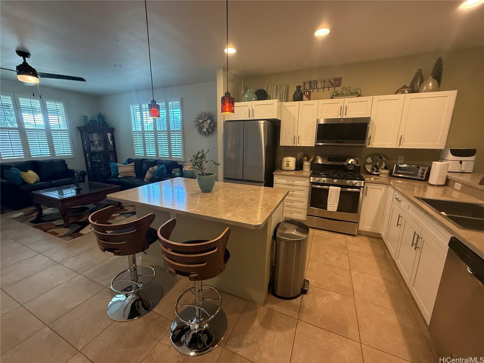 [0] => Easy living in this spacious 3 bed/ 2 bath single level Ewa Beach home. 1,608 sq ft of comfort with automated control of your irrigation, HVAC, security, photovoltaic, and lanai Sonos speaker systems. Gas lines for cooking, clothes dryer and on-demand water heater cuts use of electricity. Electricity collected by owned solar panels. Landscaped with irrigation system feeding your lawn and gardens with ornamental plants, two calamansi trees and one tangerine tree. Meticulously cared for, this one-owner home is beautiful. Call your Realtor to book your "by appointment only" showing. This is it!