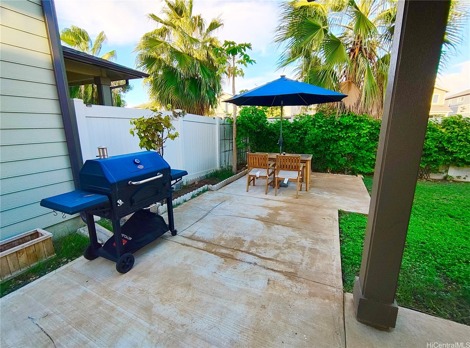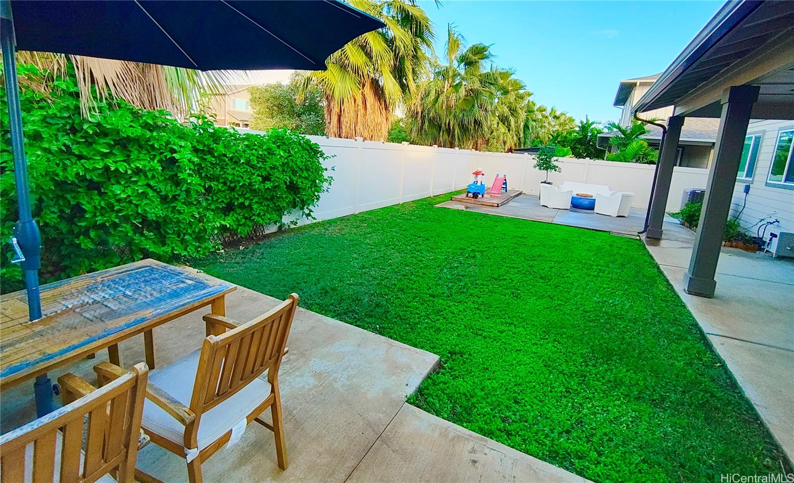 Welcome to Ewa by Gentry – Makamae, where pride of ownership and modern island living meet. This beautifully maintained home features 9-ft ceilings, an open floor plan, and a spacious island kitchen with modern cabinetry, stainless appliances, and ample storage. Enjoy indoor-outdoor living with a covered lanai and landscaped front and back yards, perfect for relaxing or entertaining. A first-floor bedroom and full bath provide convenience for guests or multi-gen living, while the primary suite offers a walk-in shower, Toto bidet, and custom closet system. Energy-efficient upgrades include 20 SEER central A/C, solar water heater, dual-pane windows, leased PV with (18) Mission Solar panels, SolarEdge inverter, Tesla battery backup, Halo water filtration, and EV charger. Shown by appointment only. Listing by: RE/MAX Honolulu (808) 600-1816