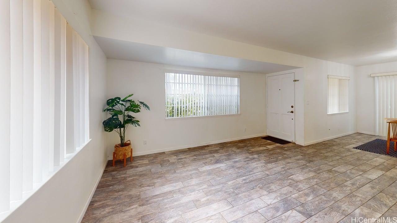 everyday living in Kapolei’s growing community. Upgraded rustic wood-like tile flooring and baseboards throughout, and bedroom carpets were replaced in 2021. Within the desired Villages of Kapolei, with no maintenance fees. To be sold As-Is.