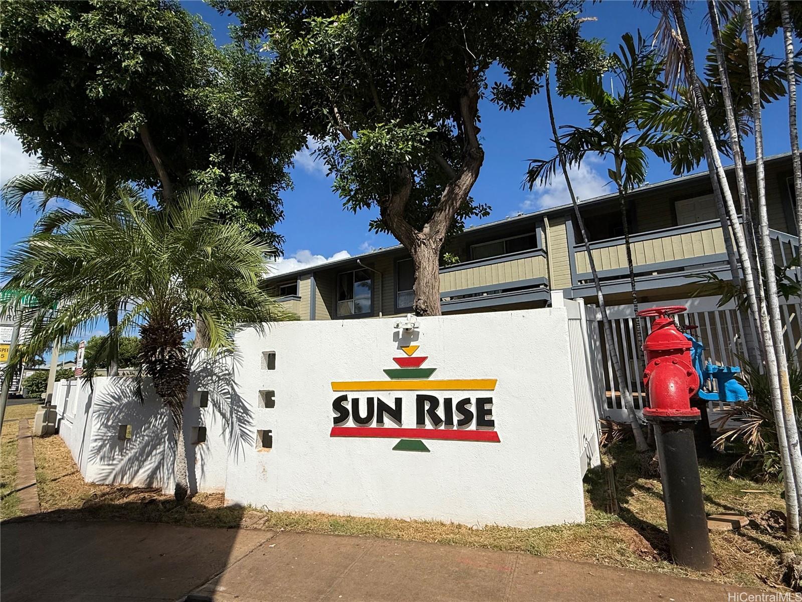 [0] => Welcome to Sun Rise, an amazing opportunity for first-time homebuyers or investors! This ground-floor 1-bedroom unit features a spacious lanai, a beautifully renovated kitchen and bathroom, great appliances, and vinyl flooring. Enjoy one assigned parking stall located near the unit, along with ample guest parking. Community residents have access to a refreshing pool, BBQ area, and on-site resident manager. Ideally located next to Ewa Town Center with Foodland, CVS, and a variety of delicious eateries.