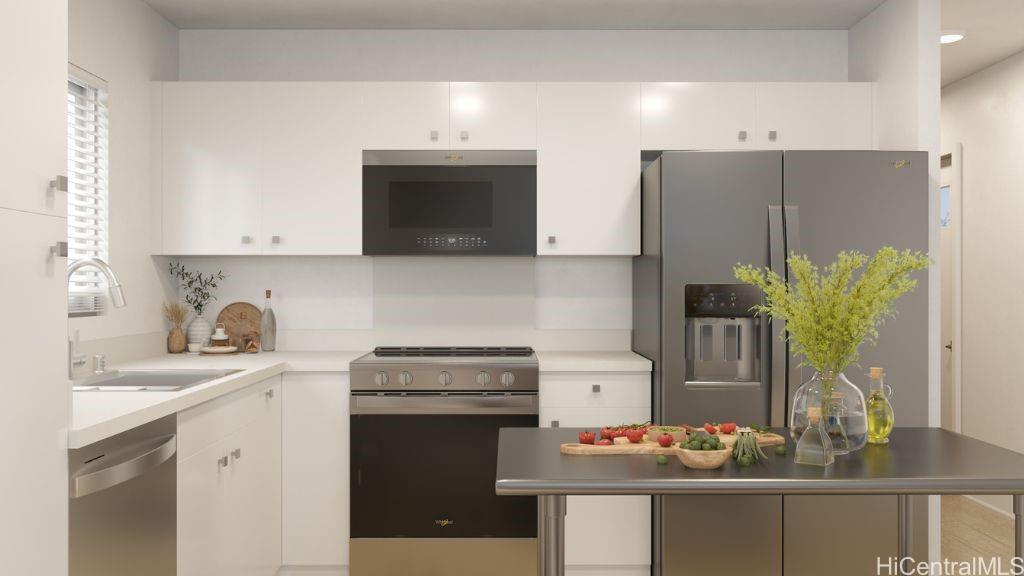 This two story 3-bedroom 2-bathroom detached single family home consists of 997 square feet of net living area and a fully fenced private back yard area. When you step into this home, you will be greeted by the kitchen featuring stainless steel appliances and white soft-close cabinets. The kitchen flows seamlessly into the living room, perfect for entertaining guests or relaxing after a busy day. Also on this floor is a primary bedroom with a walk-in shower and vanity. Upstairs, you will find a bonus room, perfect for a home office, game room, or play area. Also on this floor are two secondary bedrooms and a bathroom with a shower-tub combination to help complete the home. Whole house split air conditioning and modern appliances including a range/oven, micro-hood, dishwasher, refrigerator, and washer/dryer allow for ease of living. Listing by: D R Horton Hawaii, LLC (808) 521-5661