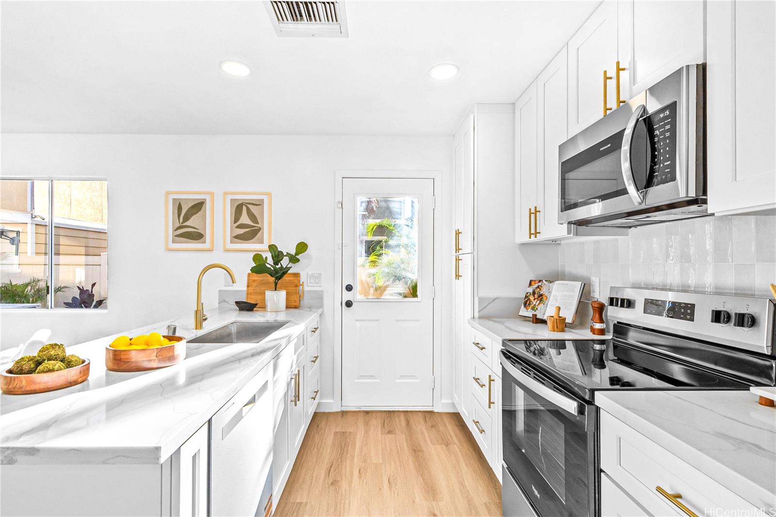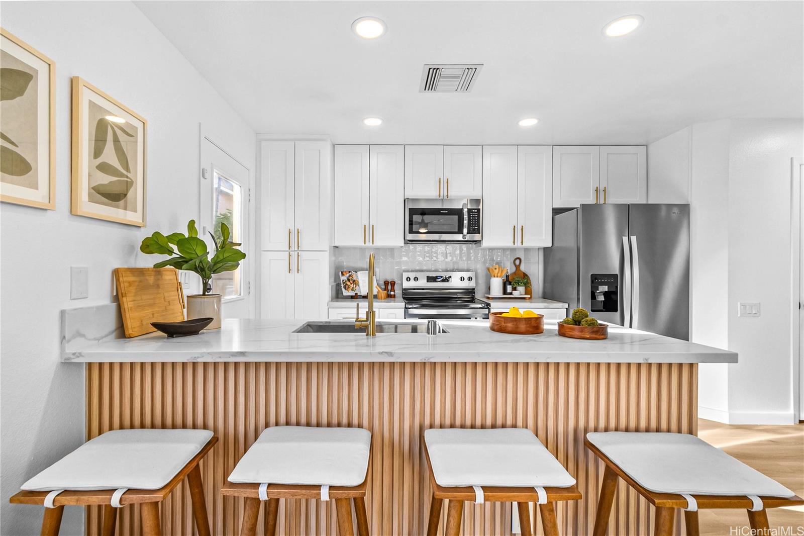 Step into this move-in ready home that truly feels brand new. Fully renovated from top to bottom, every detail has been thoughtfully updated, offering a perfect blend of modern comfort and timeless style. From the moment you walk in, you’ll notice the bright, open layout, natural light, and the attention to every detail that makes this home feel warm and welcoming. Featuring fresh paint, new flooring, and modern upgraded fixtures throughout. Enjoy the brand new central AC provided with a 10-year warranty giving you peace of mind for years to come. The kitchen shines with new cabinetry, sleek countertops, and all brand new appliances, making it ideal for cooking and entertaining. The bathrooms have been completely transformed and remodeled with contemporary finishes, giving the home a clean, spa-like feel. The stylish primary suite includes an upgraded backsplash, an ensuite remodeled bath, while the additional bedrooms are ideal for children, guests, or a home office. Enjoy the convenience of a 2-car garage and an additional parking pad. With a perfect blend of functionality, comfort, and style, this home is perfectly designed and ready to move in for its next family. Listing by: Montage Realty LLC (808) 234-8322