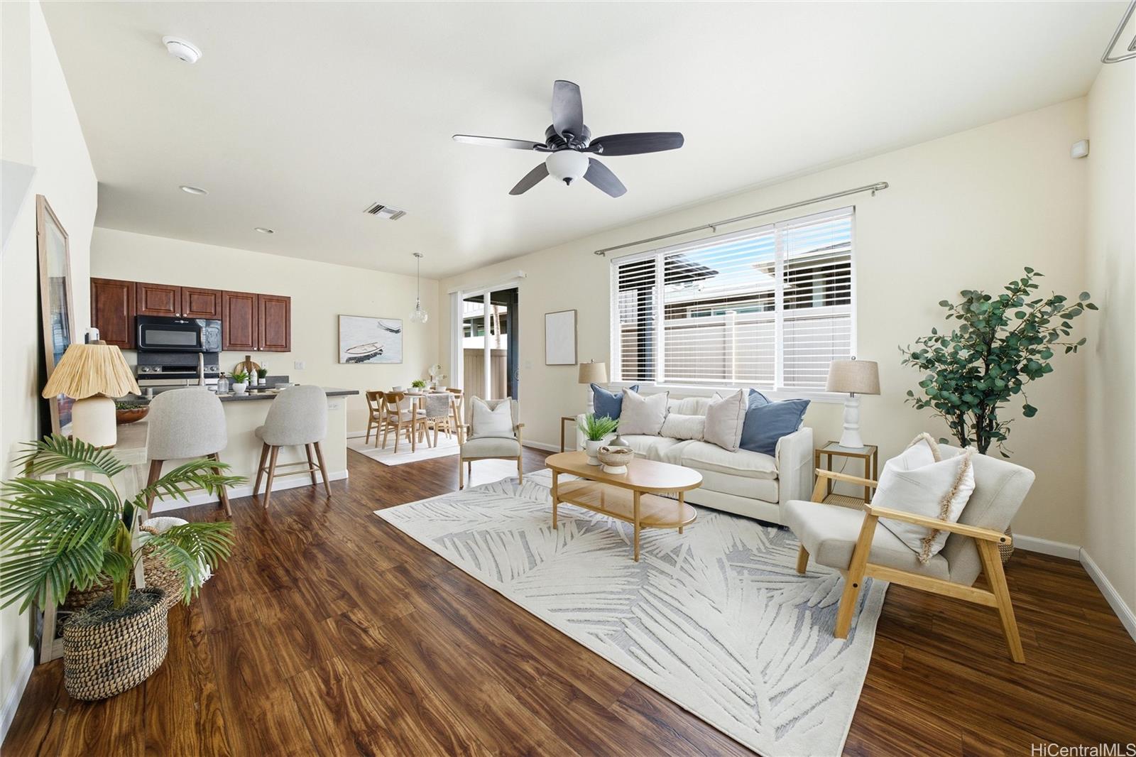 Welcome to Ewa Gentry Parkside! This beautiful 3-bedroom 2.5-bathroom home sits close to the community pool, ideal for entertaining or enjoying a relaxing day poolside. The large primary suite features an ensuite bathroom with dual vanity, a large walk-in closet, and a spacious retreat perfect for a nursery, sitting room, home office, or close it off to make a 4th bedroom. The open concept first floor is great for hosting family gatherings. The kitchen has ample storage space with an oversized pantry. Close to restaurants, beaches, and more! Best of all, the HOA just DECREASED their maintenance fees to $389 monthly, which includes your water and sewer. Come see all this home has to offer! Listing by: Hawaii Military Realty, Inc. (808) 282-3270
