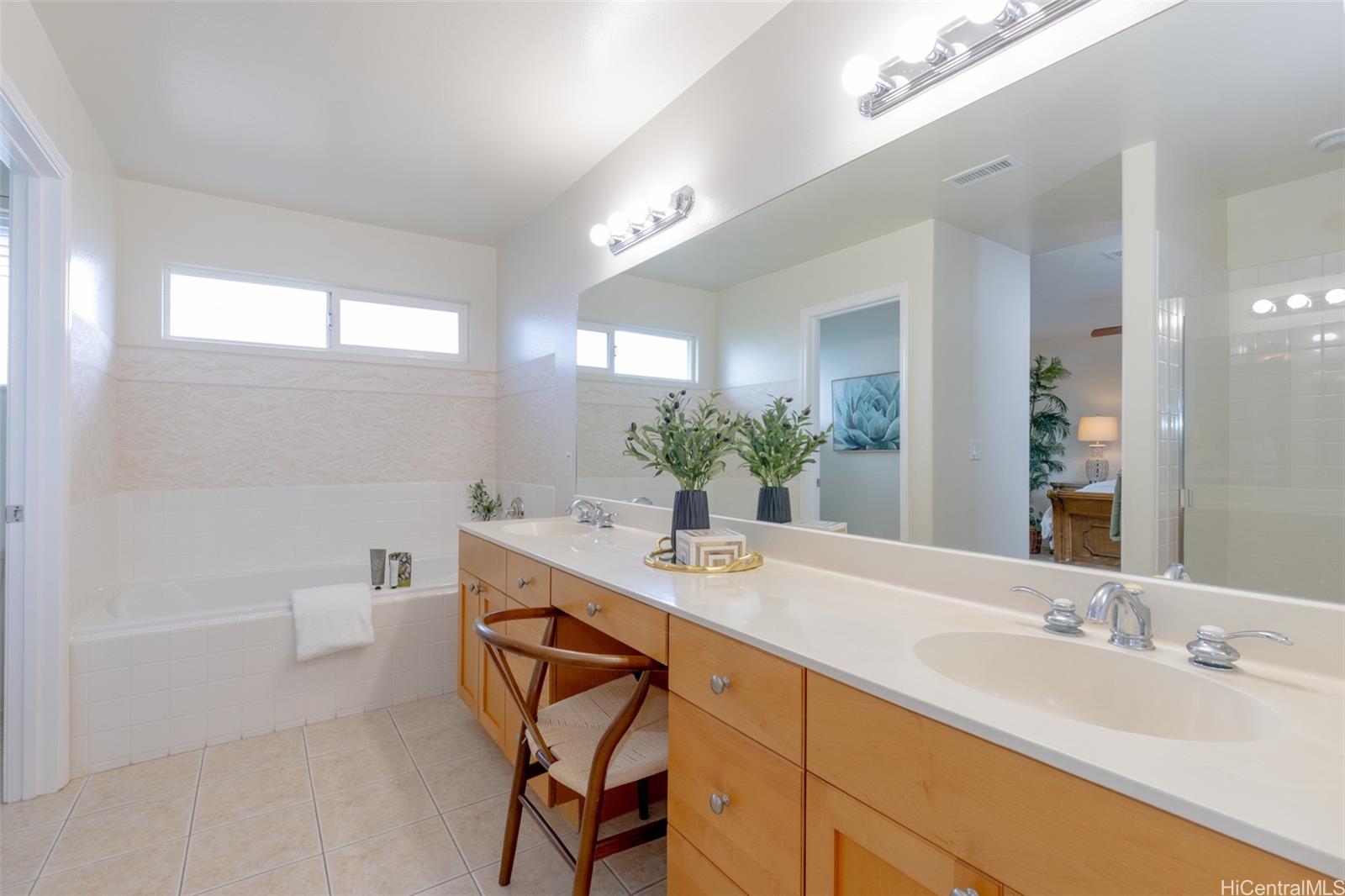 Welcome to the gated community of Hu'elani located in the Ewa neighborhood of Oahu, Hawaii. Pride of ownership is evident in this 3 bedroom, 2.5 bath home with central AC, enclosed two car garage and enclosed back yard with a covered lanai. The home has 36 photovoltaic panels and was freshly painted prior to coming on market. Resort like amenities, close proximity to golf courses, shopping and schools. The maintenance fee covers painting of homes every 10 years, roof maintenance/repair, front yard maintenance, yearly termite inspection, water & sewer, clubhouse, pool, gym and spa, the clubhouse & entry gate are monitored by video cameras, Site Manager and plenty of guest parking. You don't want to miss this special home and community! Listing by: Berkshire Hathaway HmSvc HI RE (808) 227-4799