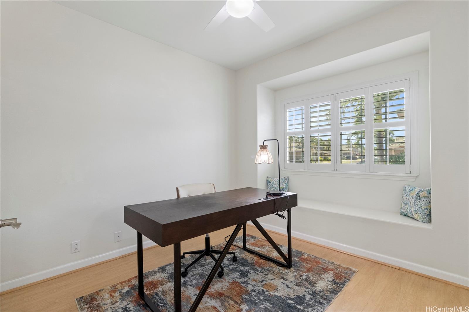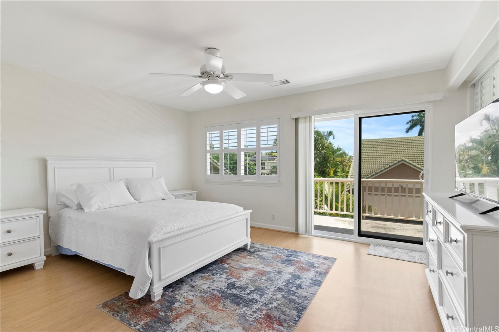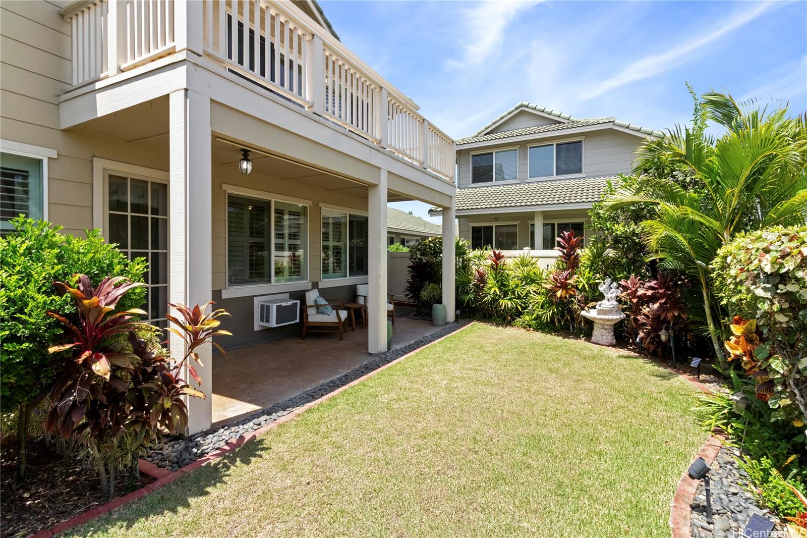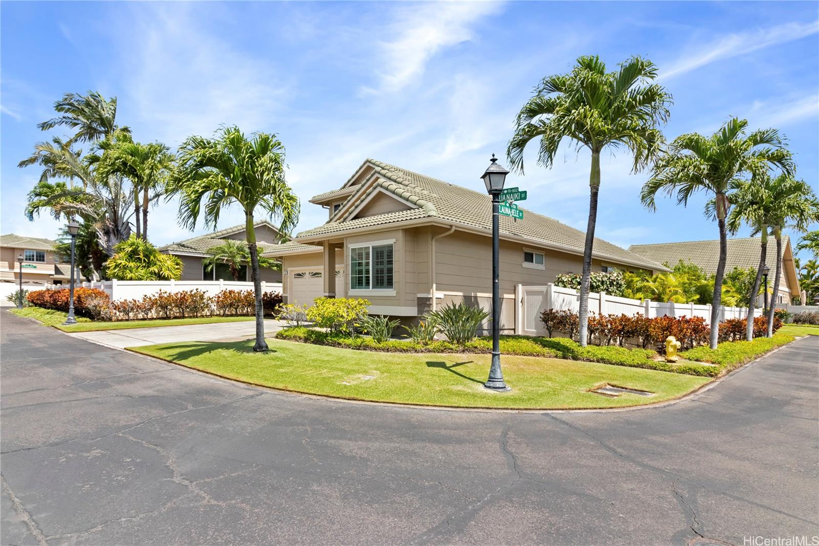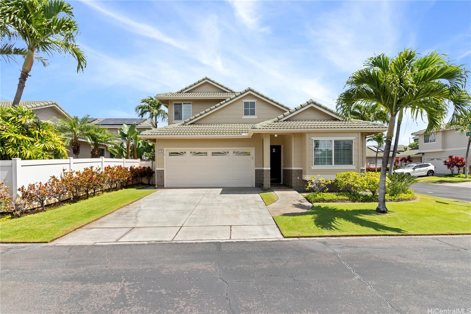 Welcome home to Huelani, a gated planned community of CPR Single Family Homes with Resort-like amenities. This 3 bedroom, 3 full bath home features 2 bedrooms on the first floor, one of them a large primary suite. The second floor contains a family room, full bath, and another spacious bedroom with a large lanai overlooking the lush private yard. Enjoy entertaining your guests in the comfortable open floor plan cooled by the central AC. Some of the features include Plantation Shutters, enclosed 2-car garage, landscaped front and back yards. The maintenance fees cover the costly upkeep of roof maintenance, exterior painting, front yard landscape maintenance, hurricane insurance, termite protection, water and sewer, and all of the amazing community amenities. Listing by: Locations LLC (808) 589-7944