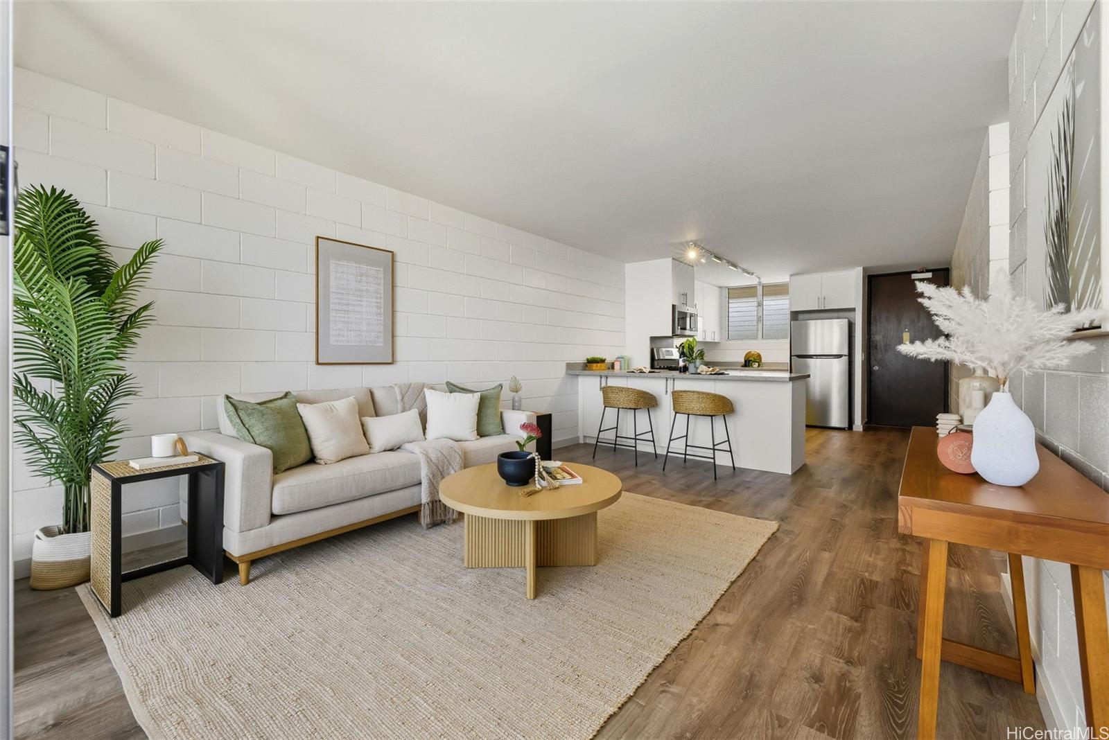 string(1060) "Easy to show! Discover this fully renovated 2-bedroom, 1-bath condo at Holiday Parkway, a stylish retreat in the heart of Honolulu. Step inside to bright, airy living spaces featuring luxury vinyl plank flooring, a modern white kitchen with solid quartz countertops, and stainless steel appliances. Thoughtful details like ceiling fans and plenty of closet storage add everyday comfort.