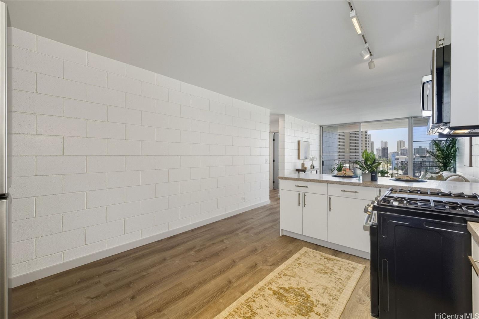 [0] => Easy to show! Discover this fully renovated 2-bedroom, 1-bath condo at Holiday Parkway, a stylish retreat in the heart of Honolulu. Step inside to bright, airy living spaces featuring luxury vinyl plank flooring, a modern white kitchen with solid quartz countertops, and stainless steel appliances. Thoughtful details like ceiling fans and plenty of closet storage add everyday comfort.