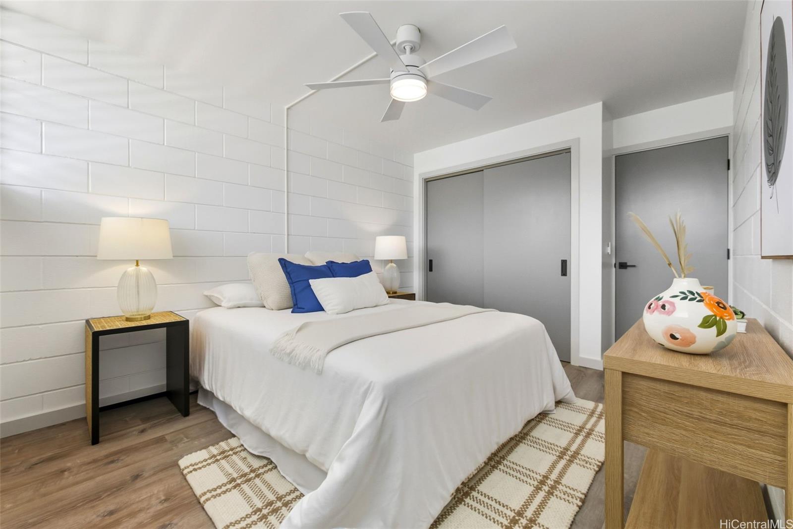 Easy to show! Discover this fully renovated 2-bedroom, 1-bath condo at Holiday Parkway, a stylish retreat in the heart of Honolulu. Step inside to bright, airy living spaces featuring luxury vinyl plank flooring, a modern white kitchen with solid quartz countertops, and stainless steel appliances. Thoughtful details like ceiling fans and plenty of closet storage add everyday comfort.