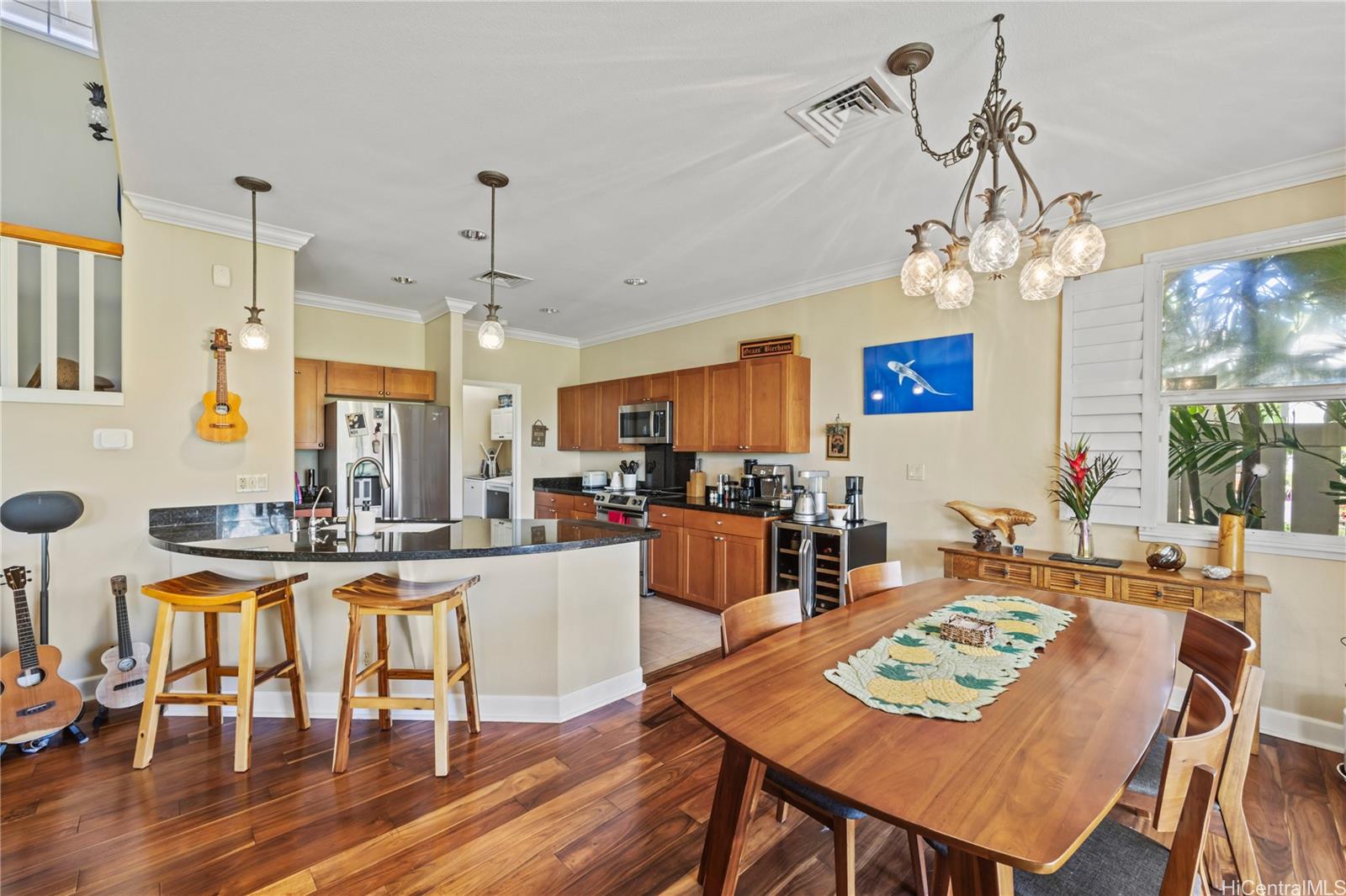 string(856) "Resort style living at its best with golf course views on the 15th green! The expansive backyard is a tropical paradise completely fenced in for your pets or small children. Custom designer upgrades with acacia wood floors, plantation shutters, crown molding and tiled lanai. Spacious private primary suite on the 2nd floor. The first floor den w/separate entry can be used as a gym, office, or converted into a 4th bedroom. Stainless steel appliances in the kitchen. Living room has vaulted ceilings and windows with lots of natural light. Entertain on your spacious lanai or enjoy a morning sunrise. Drive your golf cart to any of the four lagoons, Aulani Resort and Four Seasons Resort. Perfect as a vacation home or investment! Access to Ko Olina Beach & Sports Club which includes a fitness gym, tennis courts, fitness classes, and much more!"