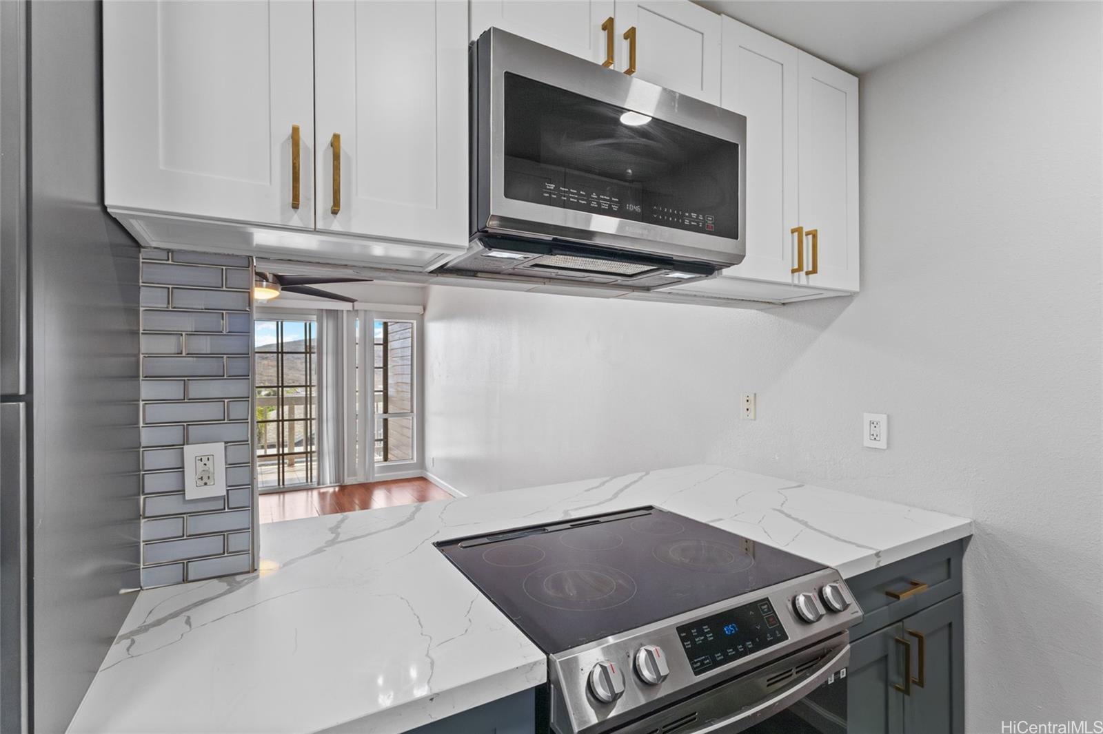 Makakilo Cliffs 2 Bedroom, 2 Bath with Ocean Views; Beautifully remodeled in 2023, this move-in-ready home features a brand-new kitchen, two fully renovated bathrooms, new ceiling fans, and custom closet systems throughout. The in-unit washer and dryer were purchased in 2024, adding everyday convenience to the thoughtful upgrades. Located on the same level as its two covered parking stalls no stairs required this home combines modern comfort with effortless accessibility. From the lanai, enjoy refreshing trade winds and sweeping ocean views. Set within the serene Makakilo Cliffs community, you’re just minutes from Kapolei’s shopping, dining, schools, and entertainment. Listing by: Keller Williams Honolulu (808) 888-9532