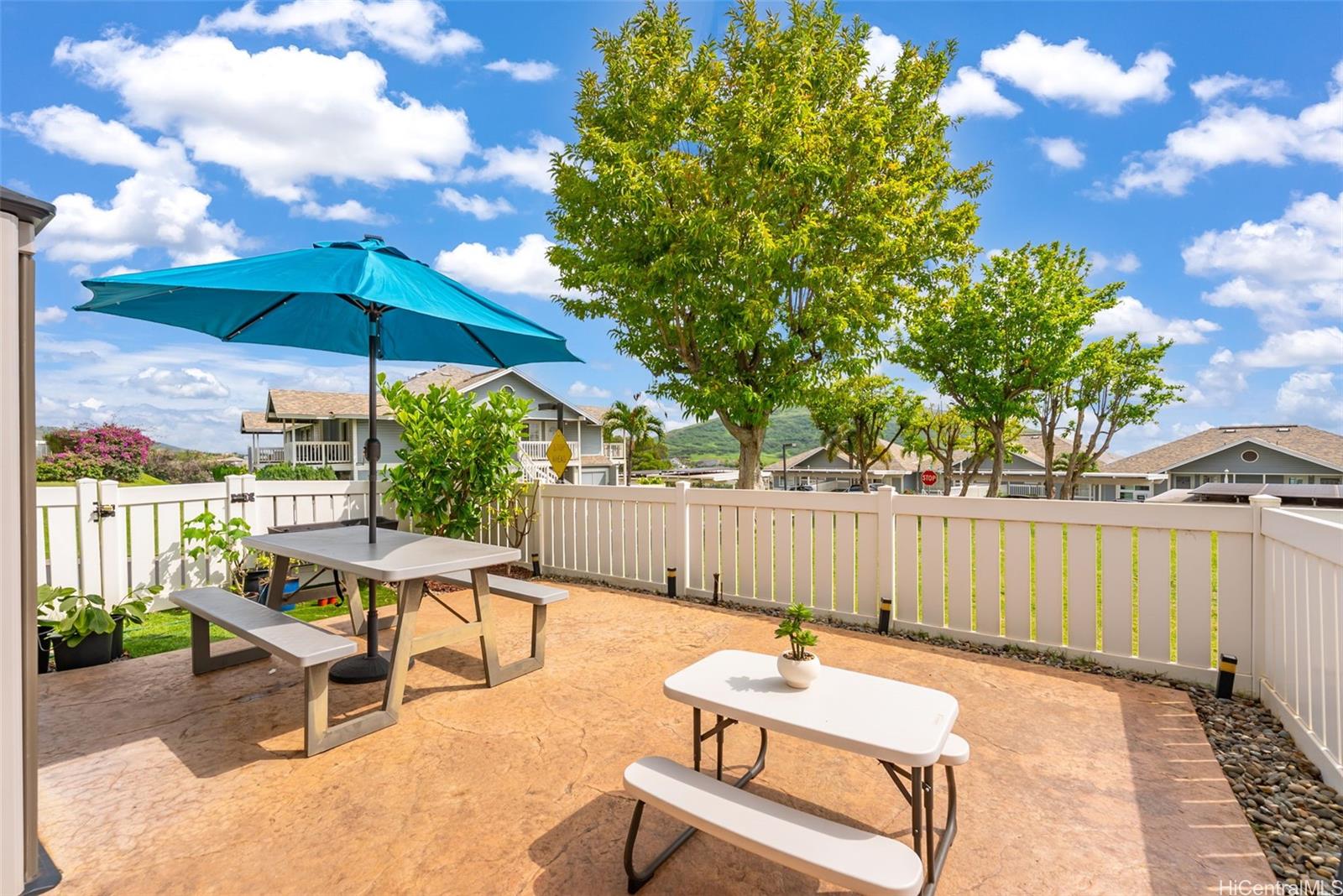 Move-in ready 2-bedroom, 2-bath end-unit at Makakilo Cliffs with 760 sq ft of interior living space and ~70 sq ft of private low-maintenance patio. The corner location offers added privacy, bright open living, and stunning ocean and mountain views. Inside, enjoy a modern kitchen, smooth ceilings, and split A/C in both the primary bedroom and living room for year-round comfort. The layout flows seamlessly to the outdoor space, perfect for relaxing, entertaining, or just enjoying the views with minimal upkeep. Makakilo Cliffs provides guest parking and is perfectly situated near freeway access, just a quick 15-minute drive to Costco Kapolei and Ka Makana Ali‘i shopping center. Move-in ready, low-maintenance, and perfectly situated—Makakilo Cliffs #2104 is an opportunity you won’t want to miss! Listing by: REMAX Hawaii (808) 753-3923