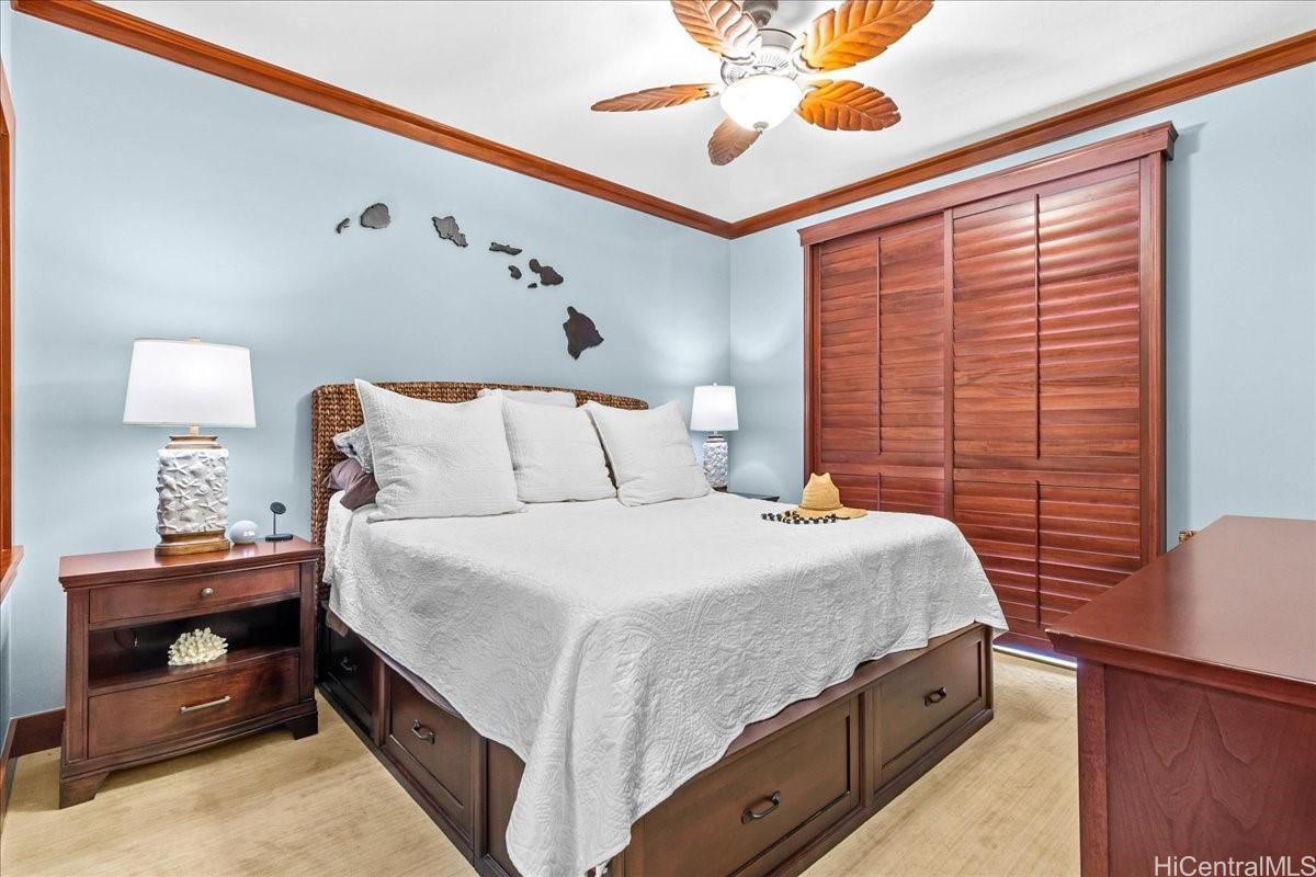 string(1118) "Situated on the 9th floor, this rare end-stack unit boasts a unique three-lanai layout offering breathtaking ocean views and vibrant sunsets. Custom wall units and cabinetry provide ample storage, while a Sonos TV sound bar and in-ceiling speakers in the living room create an immersive surround sound experience. The "split-bedroom" layout ensures privacy, enhancing these elegantly appointed living spaces, perfect for hosting guests. Enjoy seamless interiors with high-end finishes and top-of-the-line appliances in the signature kitchen by renowned Master Chef Roy Yamaguchi. Benefit from two premium parking spaces on the ground floor, plus additional storage. Exclusive amenities include a lagoon pool, three spas, a heated saltwater lap pool, a fitness center, and a tranquil garden area. Unique on Oahu, this property allows legal short-term rentals with a minimum stay of six nights, a wonderful opportunity for the discerning investor. Never rented, ideal as a primary or second home. Steps from the pristine beach, this home is a sanctuary of luxury and comfort. Note: one or more photos have been enhanced."