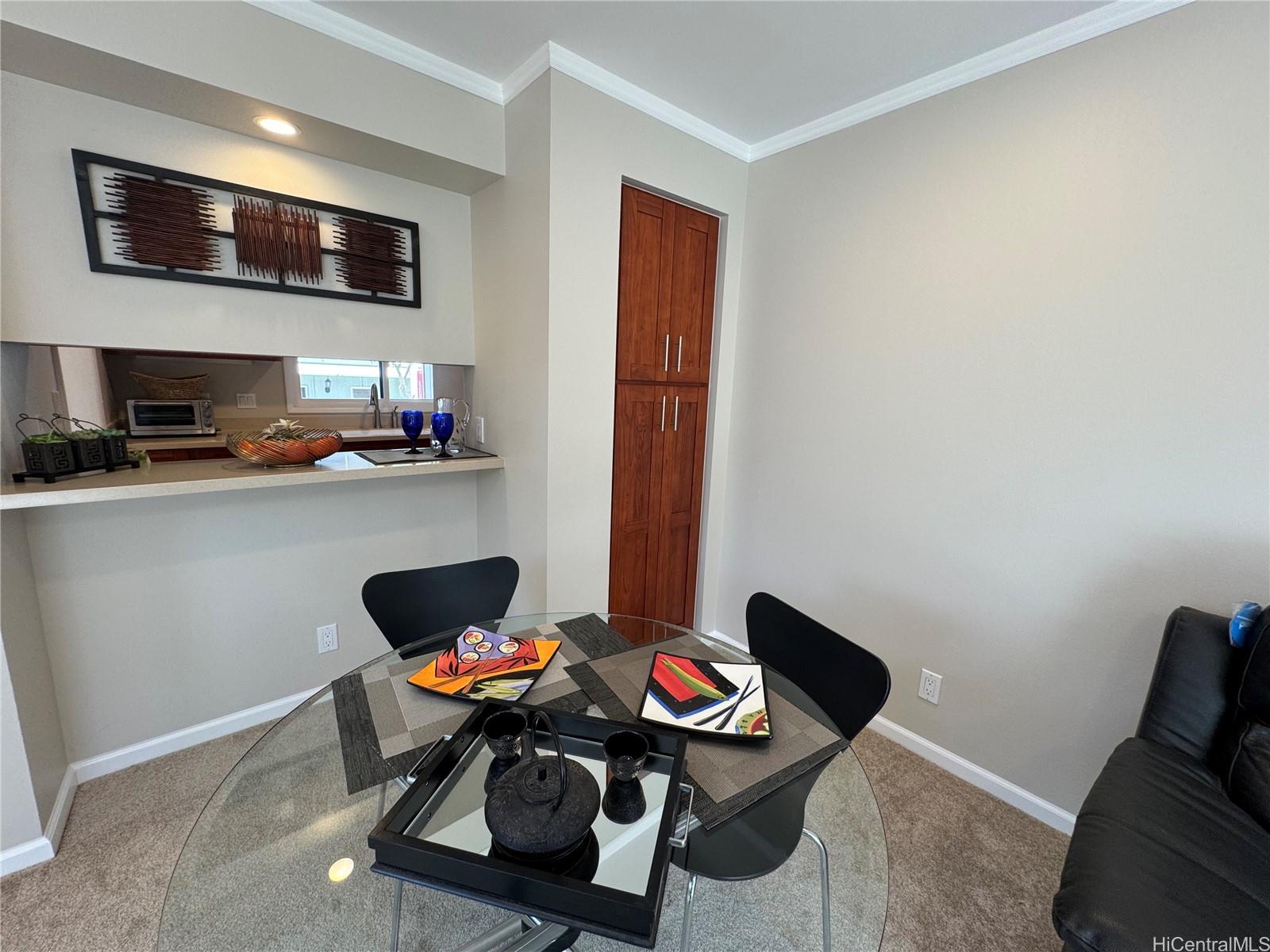 [0] => Welcome home to Palehua Gardens! This beautifully renovated townhouse has no units above, below, behind or on the right side! One of two units in this building with the reserved parking stall is 2nd stall from the building. The two bedrooms, full bathroom and laundry closet are on the upper level. The galley kitchen has a pass through to the open concept dining-living room. Bright and airy indoor - outdoor living! The fenced in courtyard has a large storage unit. This is a hurry and must see!