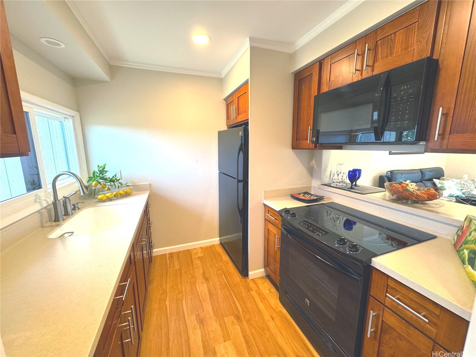 Welcome home to Palehua Gardens! This beautifully renovated townhouse has no units above, below, behind or on the right side! One of two units in this building with the reserved parking stall is 2nd stall from the building. The two bedrooms, full bathroom and laundry closet are on the upper level. The galley kitchen has a pass through to the open concept dining-living room. Bright and airy indoor - outdoor living! The fenced in courtyard has a large storage unit. This is a hurry and must see! Listing by: Inspired Realty LLC (808) 392-3456