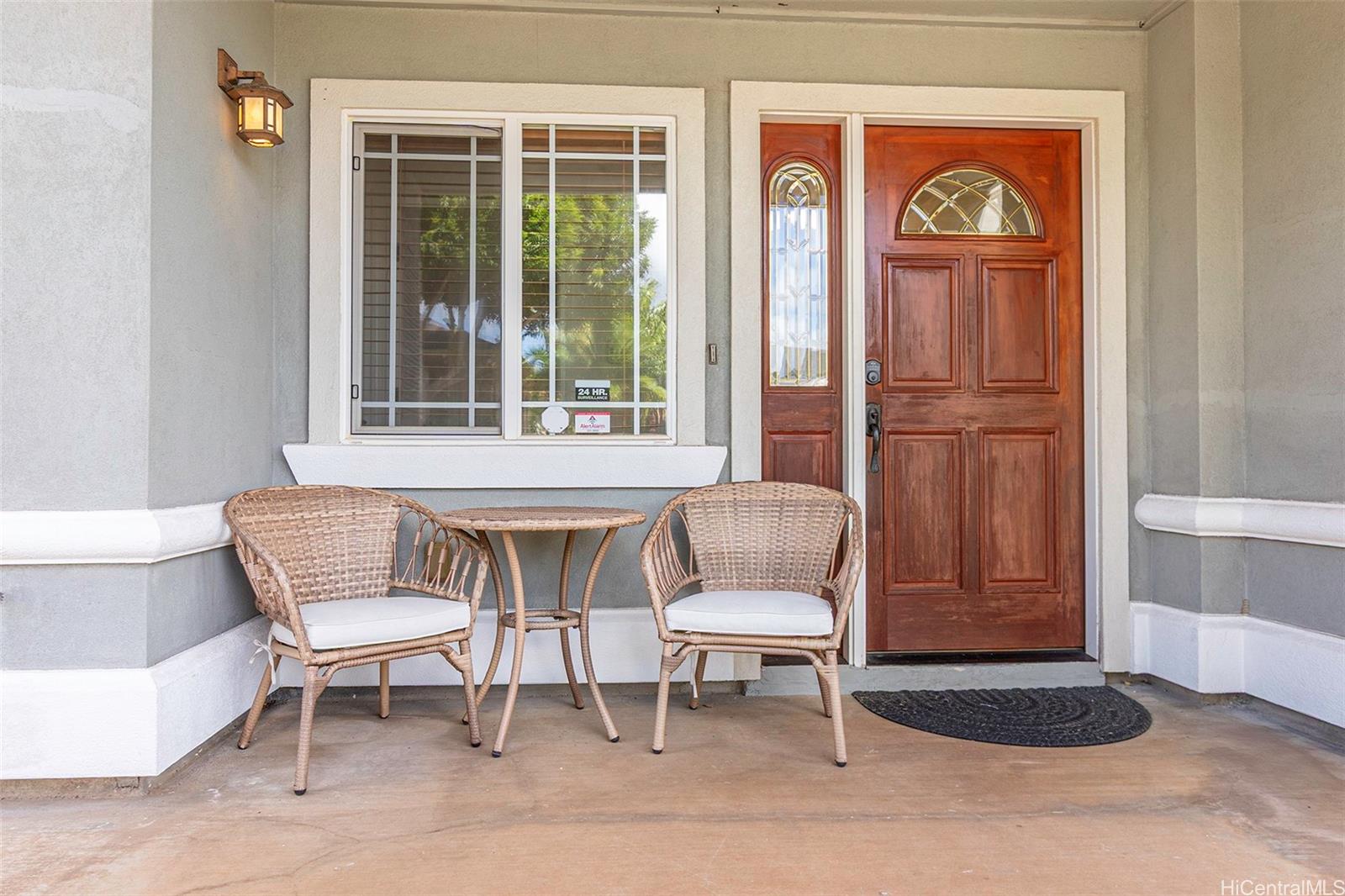 Welcome home to Hoolu Landing at Upper Makakilo! This beautiful corner residence offers 3 bedrooms, 2 full bathrooms, and an attached 2-car enclosed garage. High ceilings throughout create a bright, airy feel, while the fully fenced backyard is perfect for pets, gardening, or entertaining. The spacious eat-in kitchen features cherry cabinets, quartz countertops, and stainless steel appliances. Retreat to the large primary suite with generous closet space and dual vanities. Additional highlights include central A/C to keep you cool, a front-load washer and dryer, and a 27-panel leased PV system (through 2036) for energy savings. The maintenance fee covers water, sewer, and common area upkeep—making this home both comfortable and convenient. Put this one on your must-see list! Listing by: Redfin Corporation (808) 201-2821