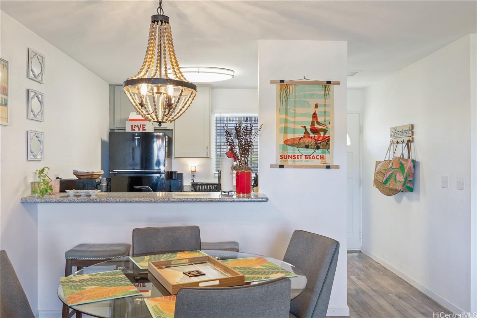 [0] => Panoramic views and cool temperatures come with this move in ready two bedroom, two bathroom condo in breezy upper Makakilo!  Enjoy privacy from your lanai overlooking the coastline and expansive green area below. Afterwards step inside and utilize the washer/dryer, dishwasher,  upgraded kitchen cabinets, remodeled bathrooms, flooring and lighting.  The complex offers ample visitor parking, 2 covered, assigned stalls, multiple outdoor gathering areas and walking paths.  In addition to the great neighborhood you are very close to shopping, restaurants, parks and other activities right down the road in Kapolei.  Schedule a showing today.