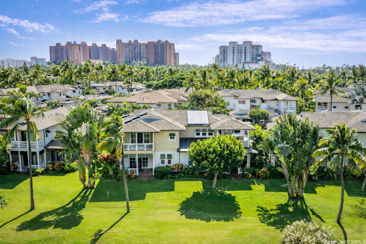 Experience refined island living in this beautifully upgraded 4-bedroom, 3-full-bath townhouse with peaceful pond views in the prestigious Resort community. Offering 1,834 sq. ft. of interior living, this turnkey residence features upgrades throughout, including owned 22-panel PV solar system. The spacious and flexible floor plan is ideal for full-time living, a second home, or investment use, with a minimum 30-day rental requirement. Enjoy resort amenities including beach access, golf, tennis, pickleball, fitness center, and classes through the Ko Olina Beach & Sports Club. Just minutes to fine dining, marina access, walking paths, and resort conveniences. A rare opportunity to own a turnkey, upgraded residence in one of Oahu’s most desirable resort destinations.