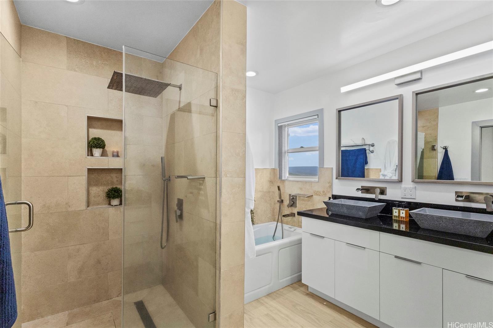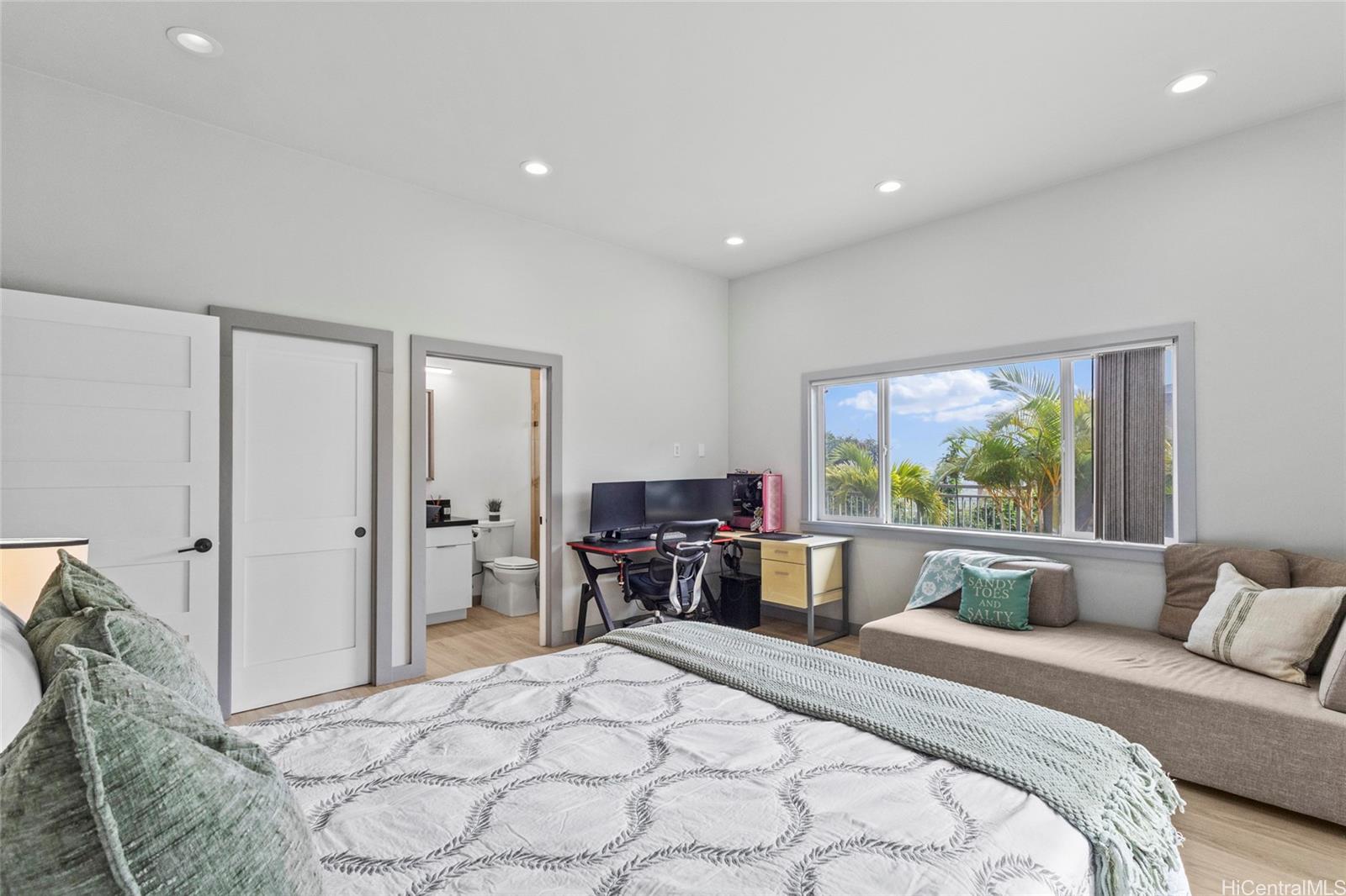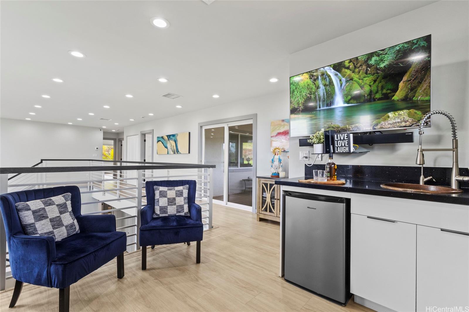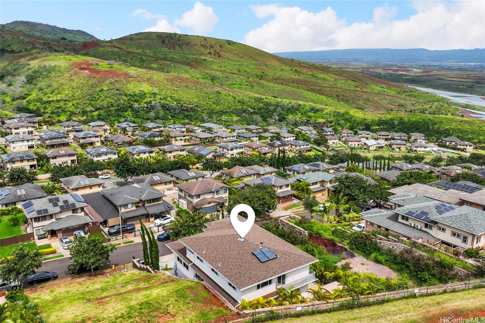 string(1192) "Perched on a perimeter lot in Wai Kaloi at Makakilo, this custom-built 2021 estate blends refined luxury with thoughtful design. Featuring 6 bedrooms and 5 full baths—including two junior suites with en suite bathrooms—this home is ideal for multigenerational living. Soaring ceilings and expansive windows bathe the interiors in natural light, while AC throughout, a central vacuum system, and luxury vinyl plank flooring throughout provide effortless comfort. The gourmet kitchen is beautifully appointed with quartz countertops and a statement copper sink, plus a separate wet bar with its own copper sink for elevated entertaining. The primary suite is complete with its own balcony capturing sweeping East Honolulu views, an expansive walk-in closet, and a spa-inspired bath with rainfall shower, jet tub, dual vanities, and a dedicated cosmetic vanity. A motorized entry gate enhances privacy, while an elevator, 4-car garage with EV chargers, lush tropical landscaping, and generous outdoor space for gatherings or additional parking complete this island sanctuary. Seller has approved permits to expand the interior living sq ft and construct a new garage, offering future growth."