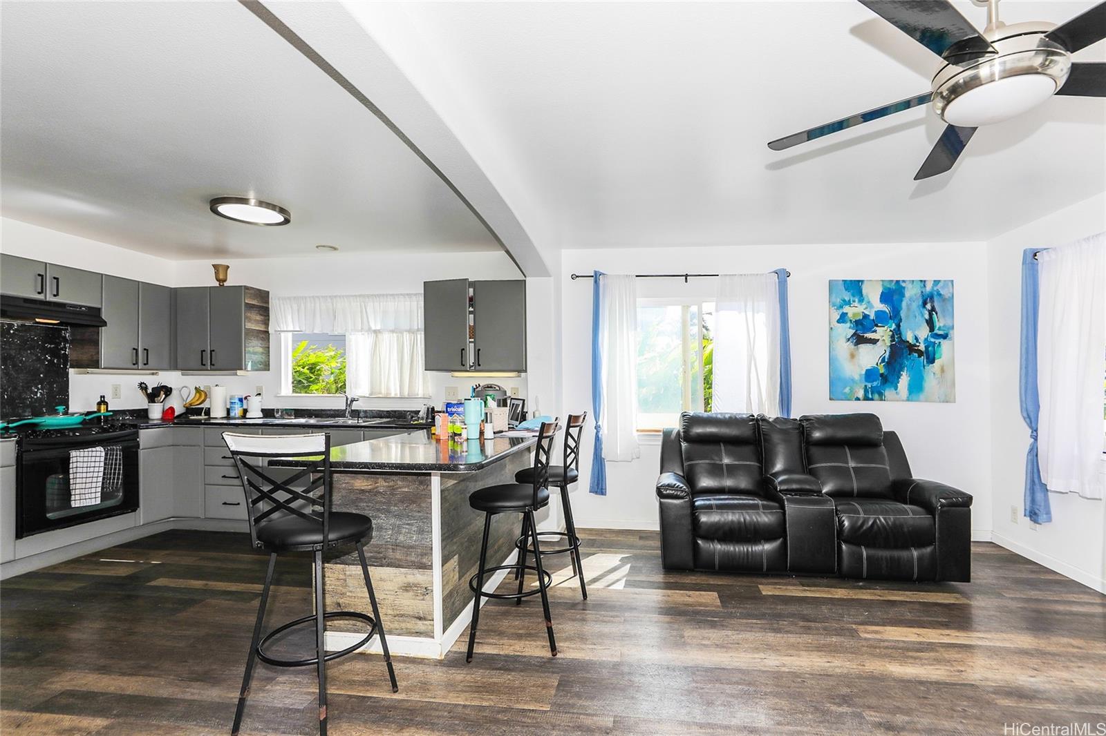 Enjoy cool Makakilo breezes, mountain and horizon views, and a peaceful residential setting while remaining conveniently located near Kapolei’s shopping centers, dining, schools, parks, and freeway access. The layout provides multiple living areas, creating options for extended use, home office, or recreation space.