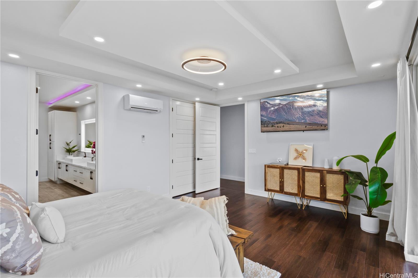 The home offers three full suites, including a downstairs suite with private entrance, full bath, and walk-in closet—ideal for multigenerational living, guests, or rental potential. Enjoy a second-floor balcony overlooking Makakilo Valley in a peaceful, quiet setting. Conveniently located near Makakilo Community Park, schools, shopping, and freeway access, yet tucked away for privacy. Modern, spacious, and thoughtfully designed.