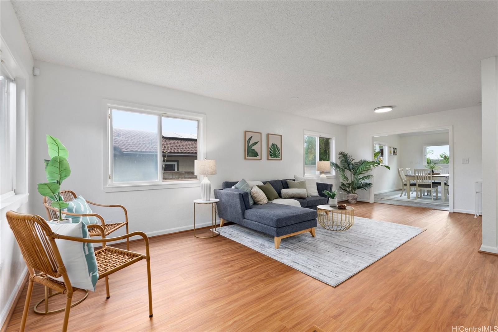 string(654) "Spacious and breezy two-story Makakilo-Highlands home with just over 2,400 sq. ft. of living space and a functional, flexible layout. Enjoy multiple living areas, great natural light, and a comfortable flow throughout. The home features an owned PV system with battery to keep energy costs low, plus a two-car garage for storage and convenience. The backyard offers room to relax or play, highlighted by a mature mango tree that has produced abundant fruit over the years. Located in an established neighborhood known for cool mountain breezes and a strong sense of community, this property offers comfort, space, and the opportunity to make it your own."