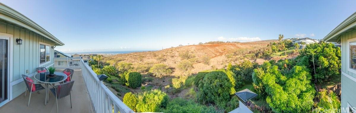 Discover an exceptional opportunity with this expansive perimeter lot nestled within the gated community of Seascape at Makakilo. This spacious 3-bedroom, 2.5-bathroom detached home features one of the largest floor plans available. Enjoy breathtaking westward views of sunsets, coastline, and vibrant city lights against a backdrop of majestic mountains. The generous open and covered lanai decks create the perfect setting for outdoor entertaining and relaxation. This home features quality upgrades, including a state-of-the-art central AC system with a four-zone configuration ($48k investment), upgraded patio railings, beautifully landscaped yard, and numerous other enhancements that elevate its appeal. Situated on the cooler side of Makakilo Heights, this residence offers the convenience of being close to Kapolei City, with easy access to a variety of dining options, shopping centers, the luxurious Ko Olina resort, freeway access, golf courses, and all the essential amenities that enhance city living. The maintenance fee of $523 covers water, sewer, and common area expenses—an incredible value for this expansive 10,395 sqft rim lot. This is a VA approved residential community. Listing by: REMAX Hawaii (808) 222-7183