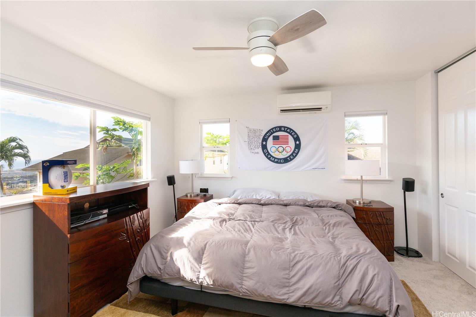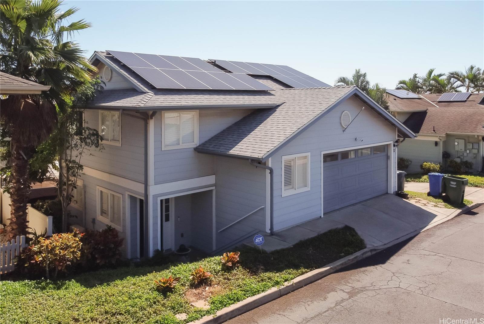 **$10,000 CLOSING COST CREDIT TO BUYER**SELLER'S ELECTRIC BILL IS $37 A MONTH!!**Discover this move-in-ready, freshly renovated single-family home located in the gated community of Seascape at Makakilo. This stunning property features an open-concept floor plan on the main level, with three bedrooms, two bathrooms, and a convenient laundry area upstairs. Enjoy ocean views from the kitchen and two of the upstairs bedrooms. The home has been beautifully updated, with interior paint, new carpeting throughout, split AC units in the living room and all bedrooms, and a brand-new roof installed November 2024! The photovoltaic system is owned with 32 panels and two Tesla Powerwalls installed January 2025, adding energy efficiency to this already impressive home. The upgraded kitchen boasts granite countertops and stainless steel appliances, while the beautiful flagstone lanai is perfect for entertaining. Relax and unwind in the new 6 person hot tub! Located close to H-1 freeway, Kapolei restaurants, and plenty of grocery options. Don't miss this incredible opportunity to own a meticulously renovated home in a desirable community. Schedule your showing today. Listing by: Berkshire Hathaway HmSvc HI RE (808) 763-9727