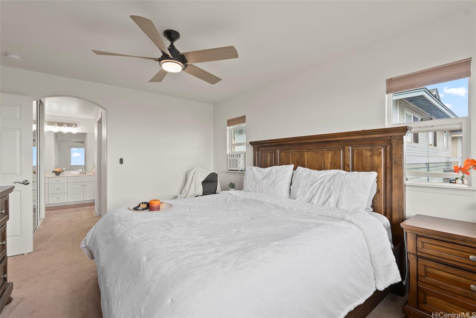 Perched in Makakilo w/DIAMOND & OCEAN VIEWS from every room & deck, this METICULOUSLY cared for 3BD/2.5BA home SHINES w/COOL BREEZES & recent upgrades: SOLAR water heater, REFRIG, MICROWAVE, OVEN, DISHWASHER, QUARTZ counters, REFACED kitchen cabinets, CARPET, ceiling FANS, light FIXTURES & FAUCETS to name a few! Relax in the REGLAZED primary BATHTUB, entertain on the SPACIOUS DECK, appreciate SPLIT AC, PLANTATION SHUTTERS, lush landscaping, large EXECUTIVE closet & FRESH interior paint. A true island retreat! Listing by: REMAX Hawaii (808) 738-3600