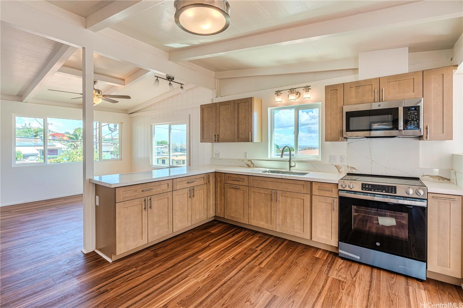 Welcome home to 92-706 Palailai Street, a stunningly remodeled residence where modern luxury meets island living. Perched on a generous 6,000 sq. ft. lot, this home features an enclosed lanai with breathtaking ocean views, perfect for sunset dining or morning coffee. Every inch of the interior has been thoughtfully upgraded with contemporary finishes, new fixtures, and elegant design details that outshine its official tax record square footage. With no HOA, full privacy, and effortless access for showings, this property offers an unbeatable combination of freedom, comfort, and coastal charm—making it a must-see for buyers seeking move-in-ready perfection in the heart of Oahu Listing by: Soldier To Soldier HI Realty (808) 312-7884
