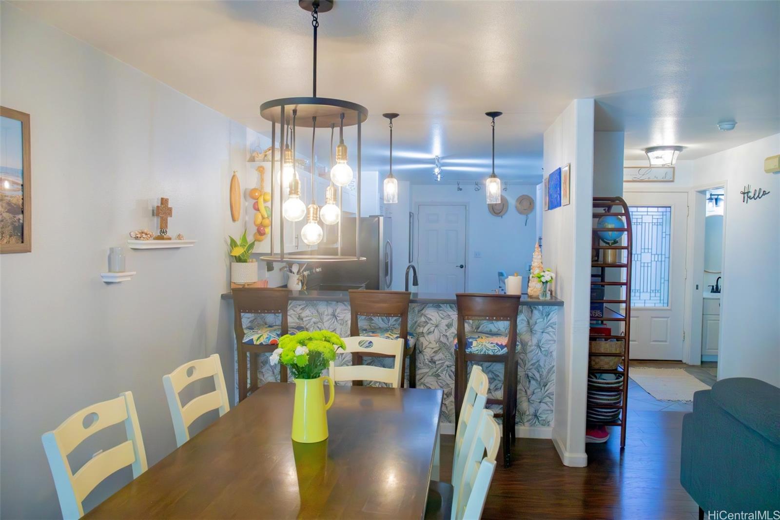 Welcome home to Ocean Ridge at Makakilo! This spacious and beautifully maintained 3-bedroom, 2.5-bath townhome feels like a single-family home and offers stunning ocean and coastline views. The bright and breezy split-level layout features an open living and dining area with large windows that bring in natural light. The updated kitchen includes stainless steel appliances, ample cabinets, and generous counter space.