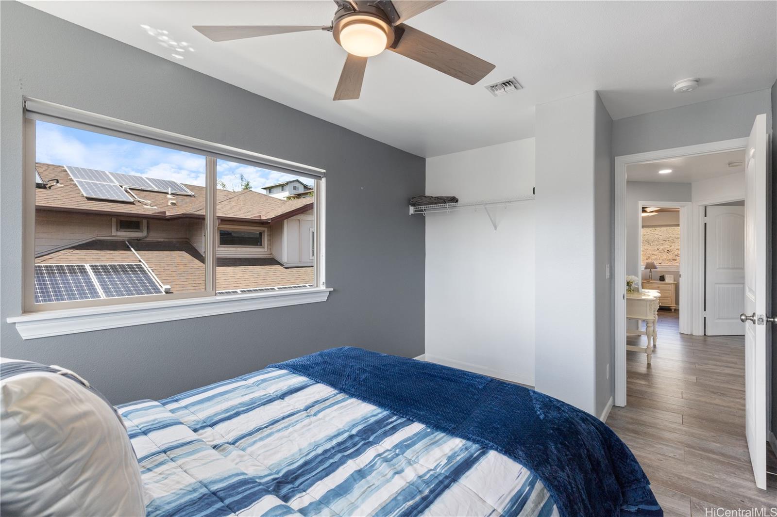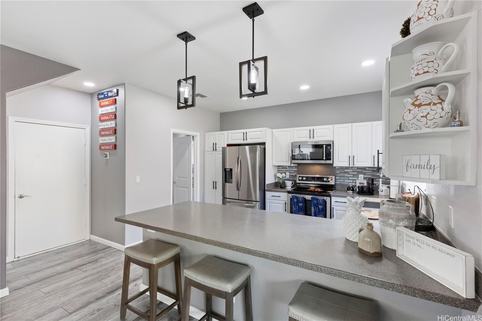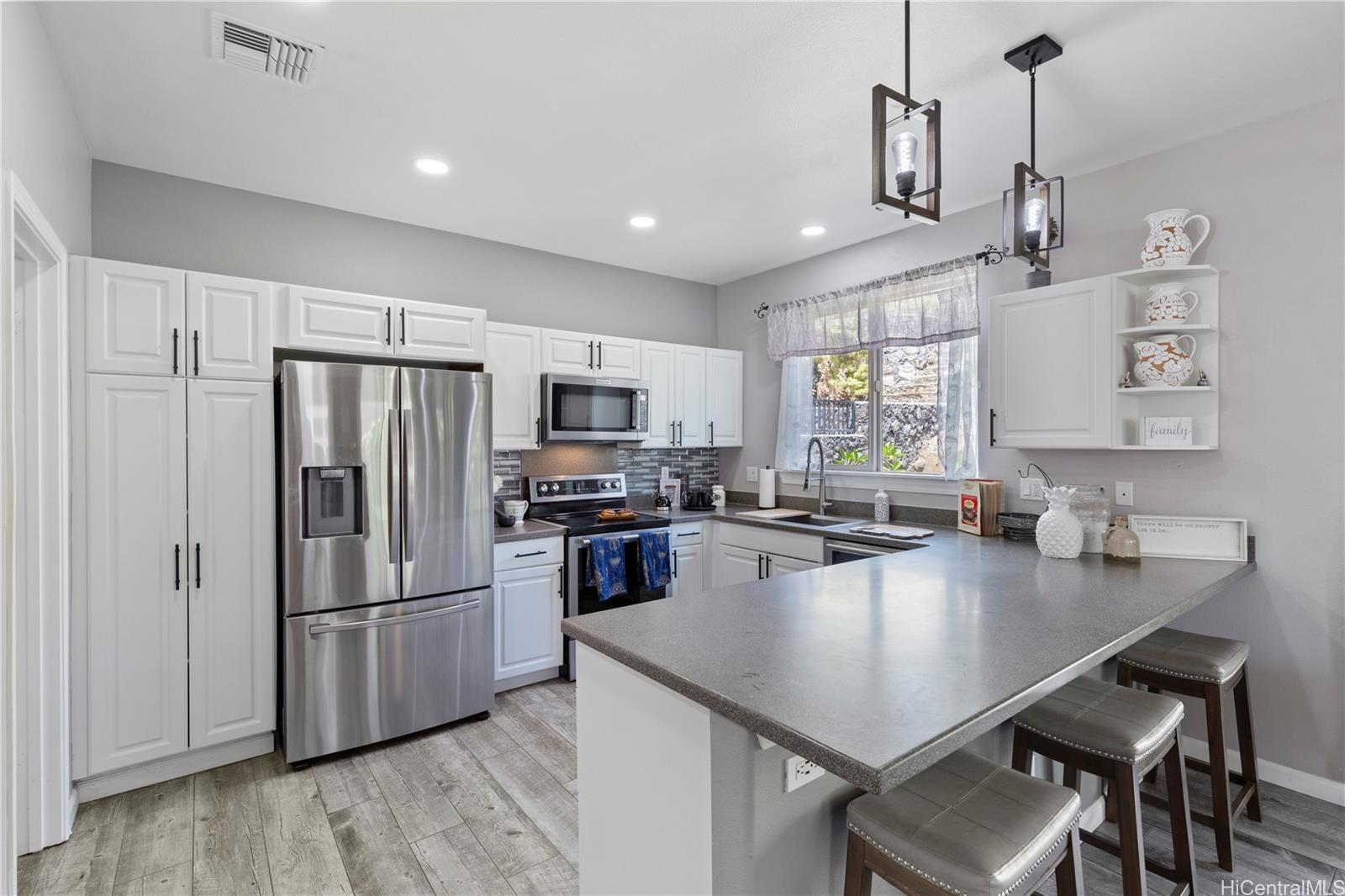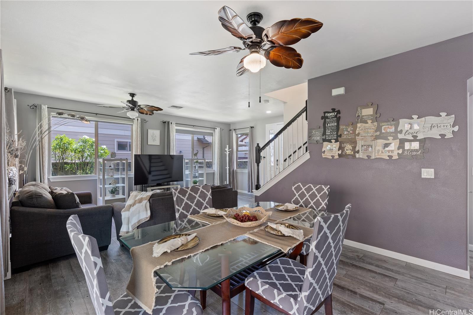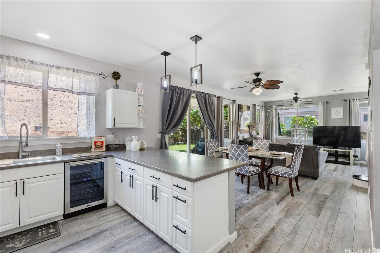 Welcome to your serene retreat in the desirable Kahiwelo neighborhood of Makakilo. This beautifully maintained two-story home offers a thoughtful layout with spacious living areas, a bright open kitchen, and a comfortable primary suite. Enjoy island living with cool breezes, valley views, and a private backyard perfect for relaxing or entertaining.