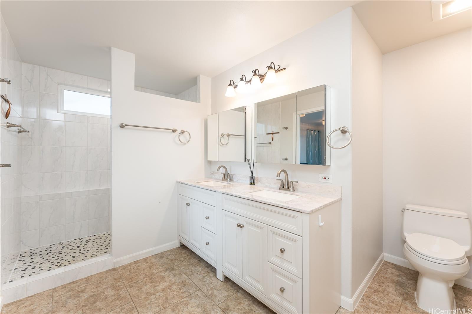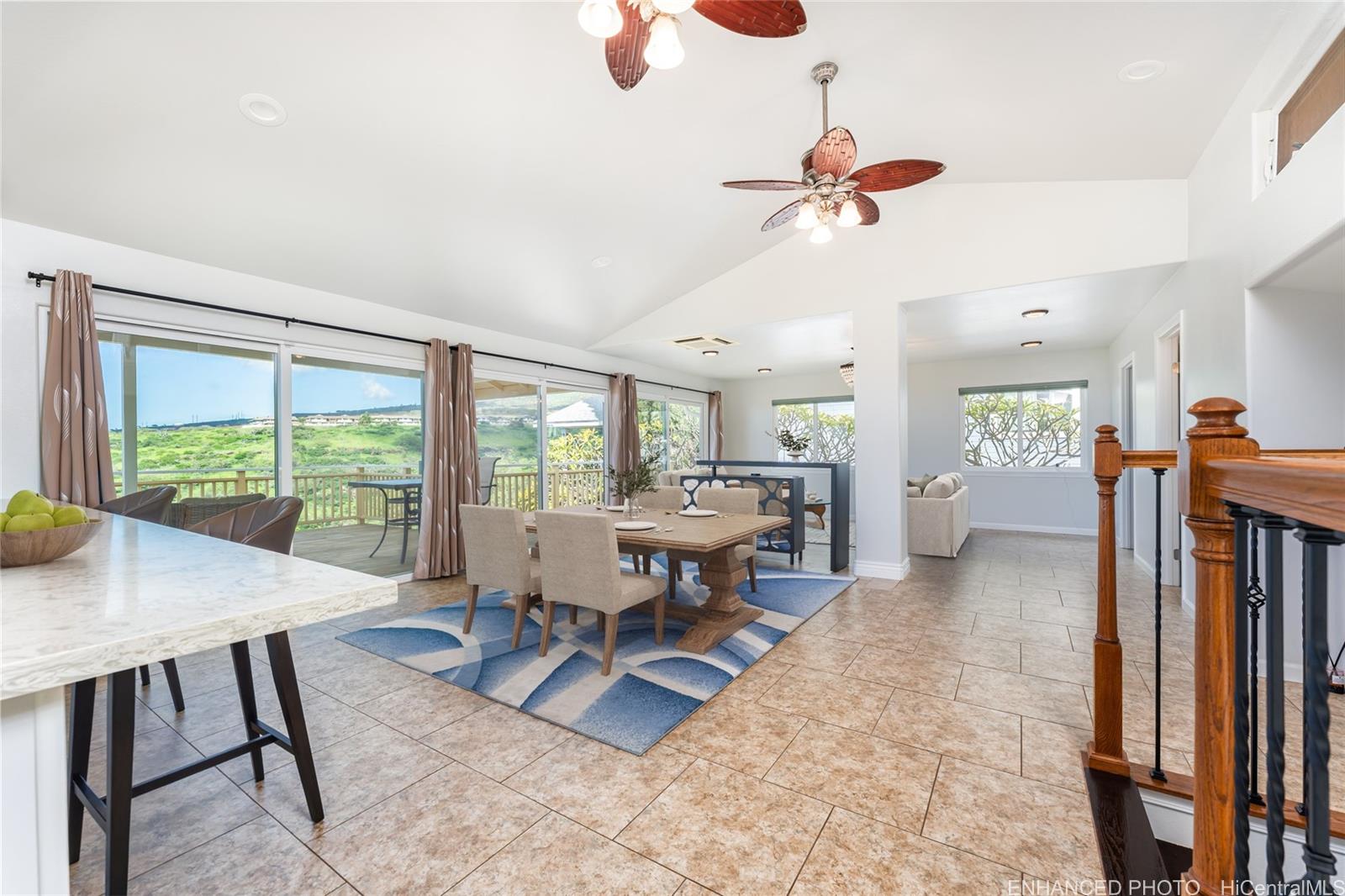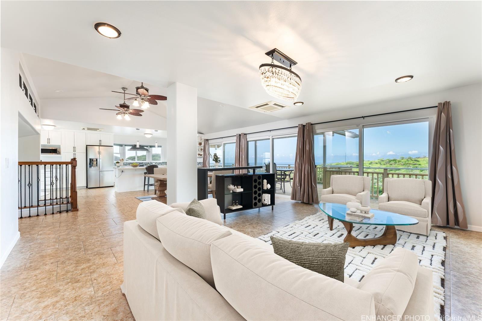 Beautifully upgraded 3bdrm, 3baths, two-story home on a rare perimeter (rim) lot in Makakilo with no rear neighbors. Enjoy panoramic west-facing views of sunsets, the ocean, coastline, and mountains. The main level features a spacious open living area that flows to a large lanai—perfect for indoor-outdoor living and entertaining in Makakilo’s cool breezes. Recent upgrades include a brand-new kitchen with new cabinetry and all-new appliances, fresh interior paint, modern finishes, and a spacious primary bedroom with a large closet. Additional features include porcelain tile flooring, split and ceiling-mounted A/C systems, and 20 leased solar PV panels with the lease paid in full. The system is on HECO Net Energy Metering (NEM), resulting in very low monthly electric costs. Enjoy multiple outdoor spaces, including a large covered main-level lanai, a lower-level patio, and a private backyard, all ideal for gatherings. This rim lot property offers the perfect blend of comfort, privacy, and breathtaking views, conveniently located minutes from Ka Makana Ali'i Mall, H-1 freeway access, restaurants, schools, bus stops and much more! (Some photos have been virtually staged/enhanced) Listing by: REMAX Hawaii West Oahu (808) 551-0548