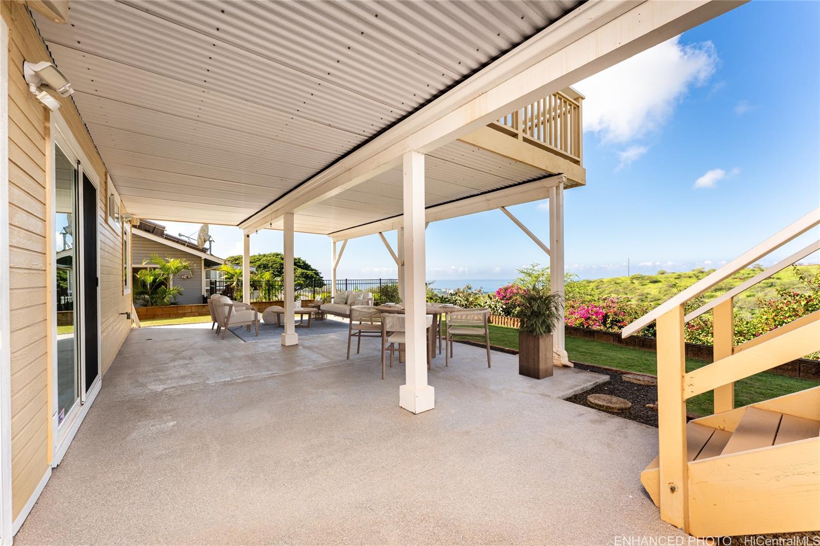 string(1197) "Beautifully upgraded 3bdrm, 3baths, two-story home on a rare perimeter (rim) lot in Makakilo with no rear neighbors. Enjoy panoramic west-facing views of sunsets, the ocean, coastline, and mountains. The main level features a spacious open living area that flows to a large lanai—perfect for indoor-outdoor living and entertaining in Makakilo’s cool breezes. Recent upgrades include a brand-new kitchen with new cabinetry and all-new appliances, fresh interior paint, modern finishes, and a spacious primary bedroom with a large closet. Additional features include porcelain tile flooring, split and ceiling-mounted A/C systems, and 20 leased solar PV panels with the lease paid in full. The system is on HECO Net Energy Metering (NEM), resulting in very low monthly electric costs. Enjoy multiple outdoor spaces, including a large covered main-level lanai, a lower-level patio, and a private backyard, all ideal for gatherings. This rim lot property offers the perfect blend of comfort, privacy, and breathtaking views, conveniently located minutes from Ka Makana Ali'i Mall, H-1 freeway access, restaurants, schools, bus stops and much more! (Some photos have been virtually staged/enhanced)"