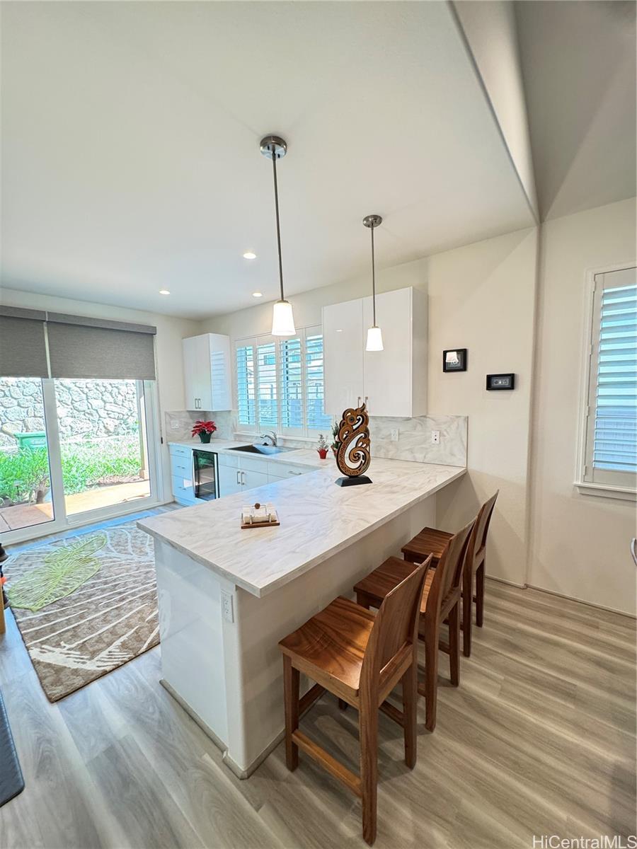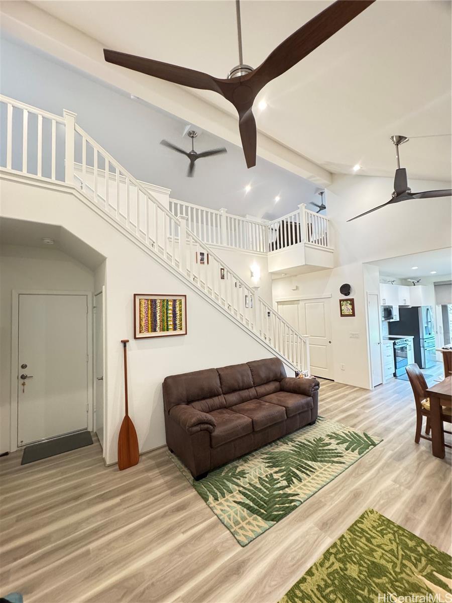 Welcome Home Hawaii proudly represents this stunning Koa Ridge NANEA II A-2 model single level home with large finished loft. This 3 bedroom 2 bath home features 1,314 sq ft of living space with a 497 sq ft loft. An extended covered lanai, Upgraded glossy white kitchen & bath cabinets, single top mount kitchen sink, pull out kitchen faucet, Artista Canvas kitchen countertops with full splash, Aurora Ecru bathroom countertops with oval bowls, range, microwave, beverage center, and Just a Hint II upgraded carpet in primary bedroom. Additional low storage next to loft is 149 sq ft. plantation shutters, split as units, custom ceiling fans This home is a perfect forever home. Listing by: Welcome Home Hawaii Realty LLC (808) 724-4111