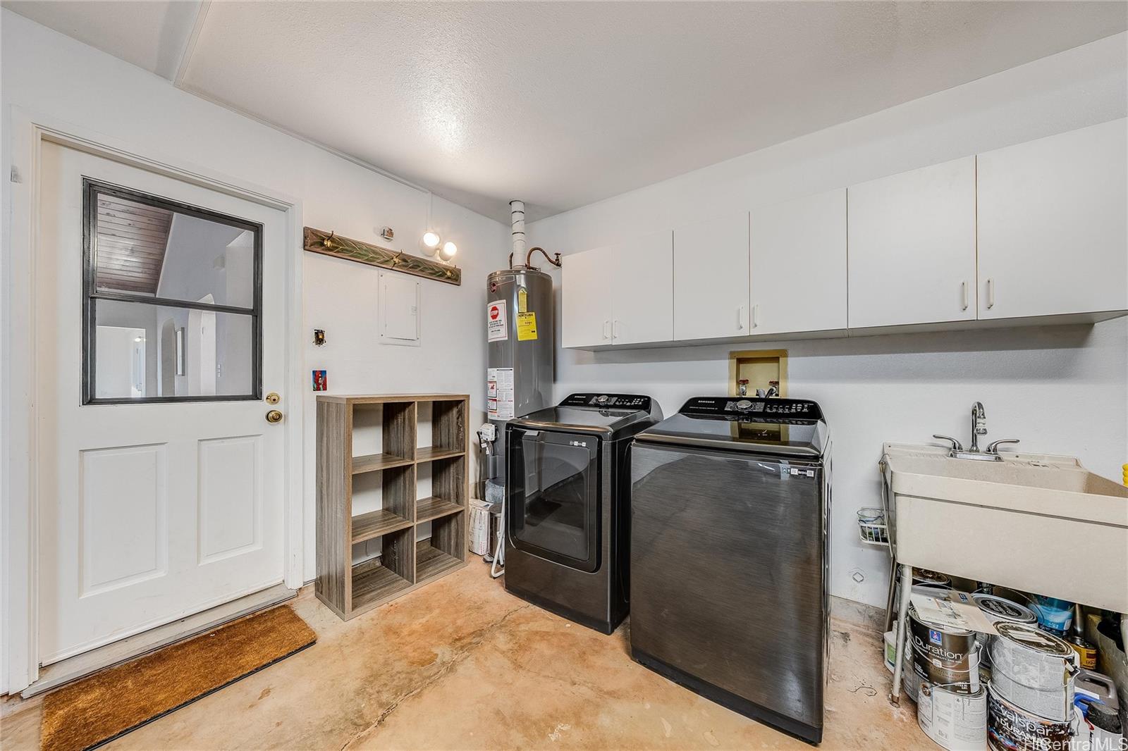 Must see well taken care of single family home with two car garage on a cul-de-sac in Waipio Gentry. The kitchen was recently renovated in 2024 with no expenses spared on appliances including Samsung's double oven gas range with air fry & griddle, and Bespoke white glass fridge with Ice maker. Plus dishwasher, washer/dryer & water heater installed in 2023. The home feels bright and spacious with picture windows throughout and vaulted ceilings. The primary bedroom has a massive bathroom with dual closets, tiled shower room and bidet. The roof was recently replaced in 2022 with aluminum shingles and silicone. New skylights with built in blinds installed in the bonus room and termite tented. The exterior was just painted and new hardscaping planted in 2025. At the end of the cup-de-sac is a walking path. Centrally located between H1 & H2. Just minutes from the shopping center dining, car wash 808, Costco, Kaiser, and Central Oahu Regional Park; a 269 acre public park with sport facilities, Olympic pool, archery range, keiki playground and more. VA assumable available at 2.25% rate with current balance approx. $600K Listing by: eXp Realty (808) 354-4744