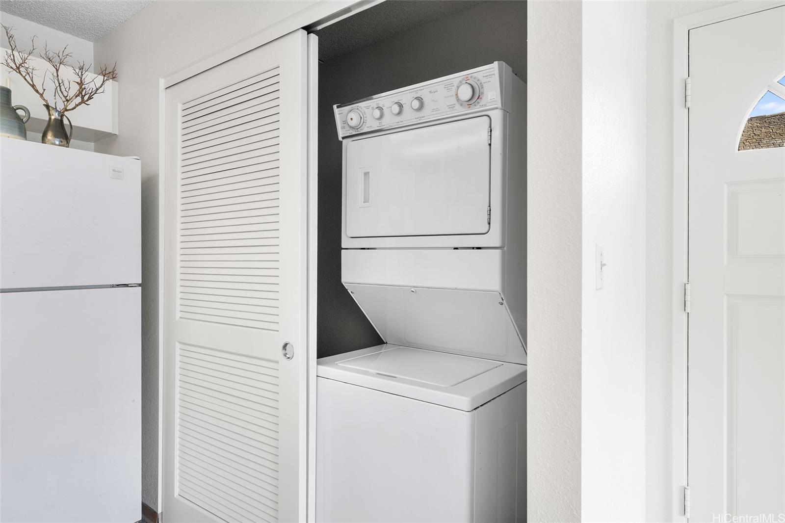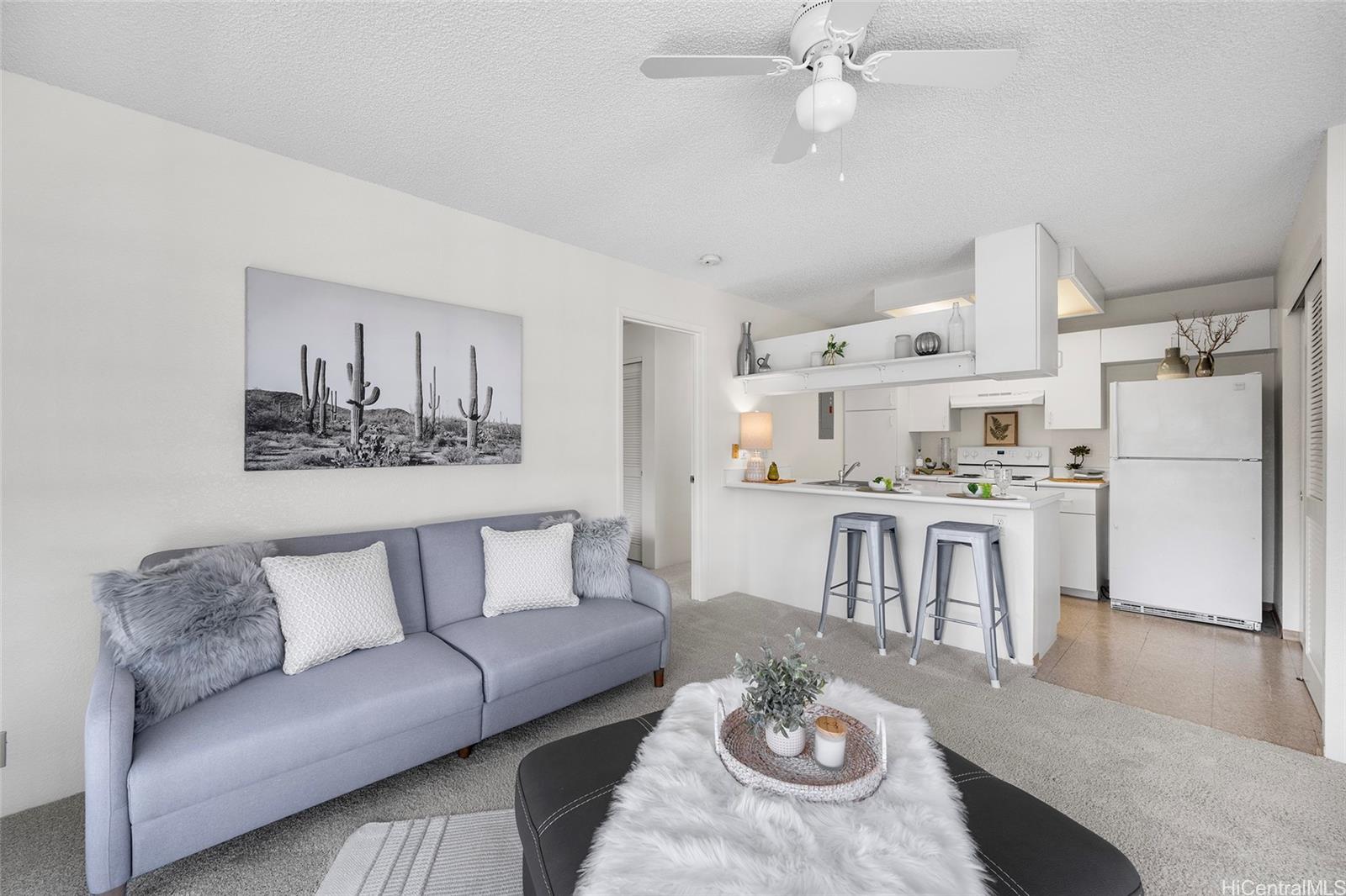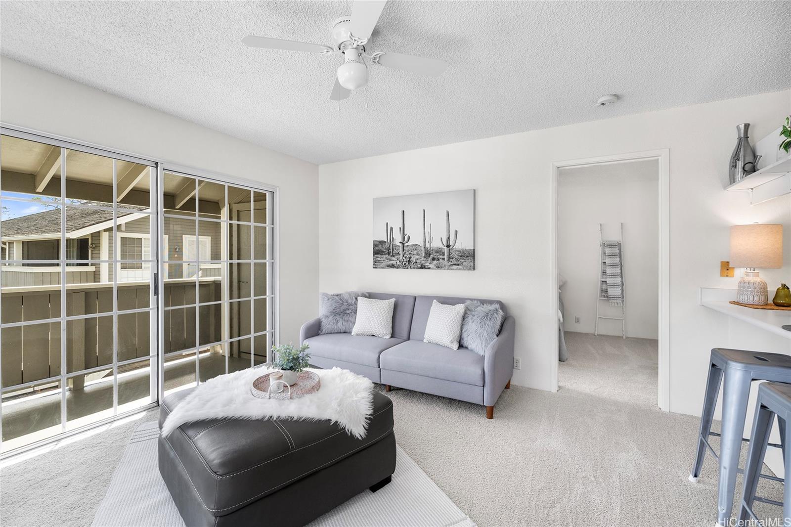 Take advantage of this opportunity to own this 2nd floor 1 bed, 1 bath unit in the desirable Royal Palm at Waipio! This unique townhouse unit has brand new carpeting throughout and includes a lanai with storage closet, stacked washer/dryer and 1 covered parking! This complex is centrally located near shops, parks and restaurants! Listing by: Engel & Volkers Honolulu (808) 479-9090