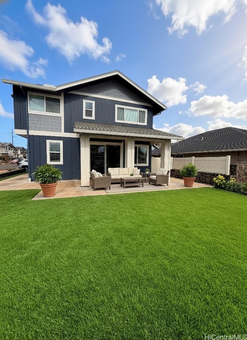 This barely lived-in home, with ALL the upgrades & landscaping, is located in one of Central Oahu’s most sought-after communities, Nanea II. It offers 3 bedrooms, 2.5 baths, plus a spacious den/loft that can be converted into a 4th bedroom. Positioned on a desirable corner lot, the home enjoys added privacy, light, and curb appeal. With nearly $100,000 in upgrades, this home is priced competitively with new construction offerings that include no upgrades or landscaping, making it a rare opportunity for the discerning buyer seeking immediate value. Luxury vinyl plank flooring flows seamlessly throughout the home, complemented by quartz countertops, plantation shutters throughout, added custom cabinetry in the entryway, and a new split A/C in the garage. An extra-large upstairs storage room adds even more flexibility for organization, hobbies, or seasonal items.