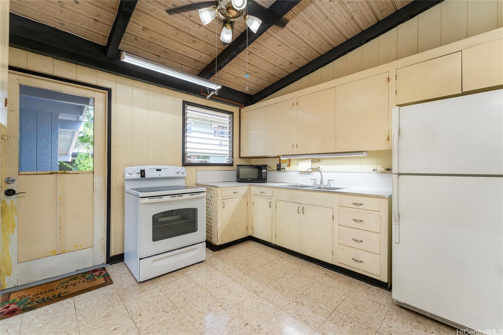 Discover the possibilities with this single level home located on a level lot. This older home offers 3 bedroom and 1 bath with a generous 6,000 sq. ft. lot, perfect for those looking to renovate, expand or rebuild. This home has had only one owner and has been well maintained. One car carport with additional parking in the cemented front yard, as well as some street parking is available right out front. Endless potential. Listing by: Island Pacific Real Estate LLC (808) 722-8185